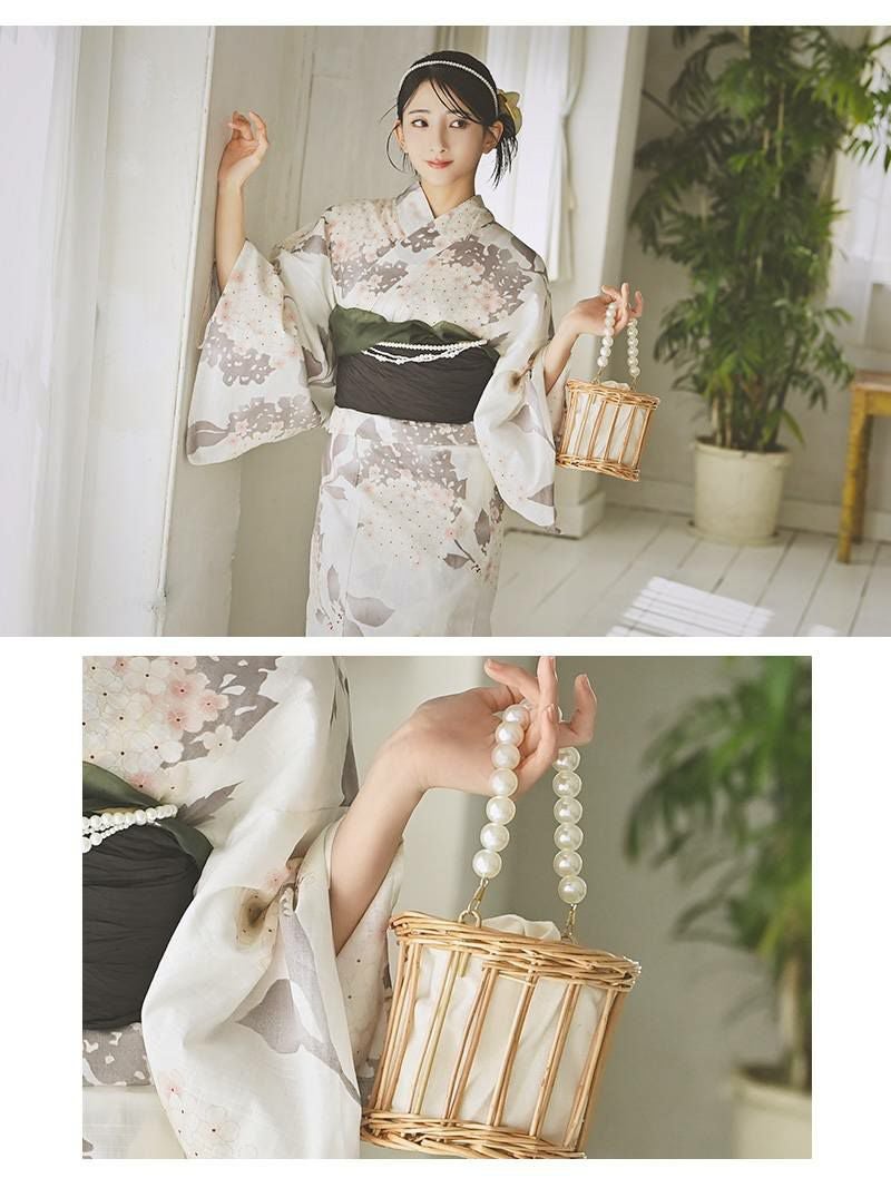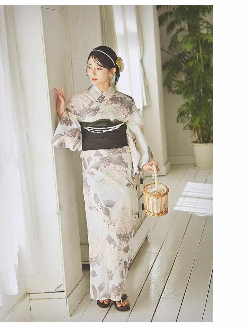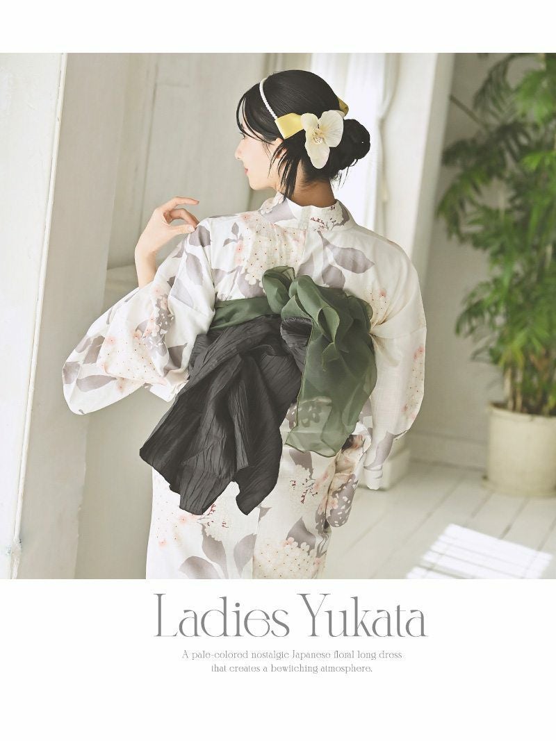 くすみカラーの桜柄が上品で洗練された印象のレディース浴衣セットです。