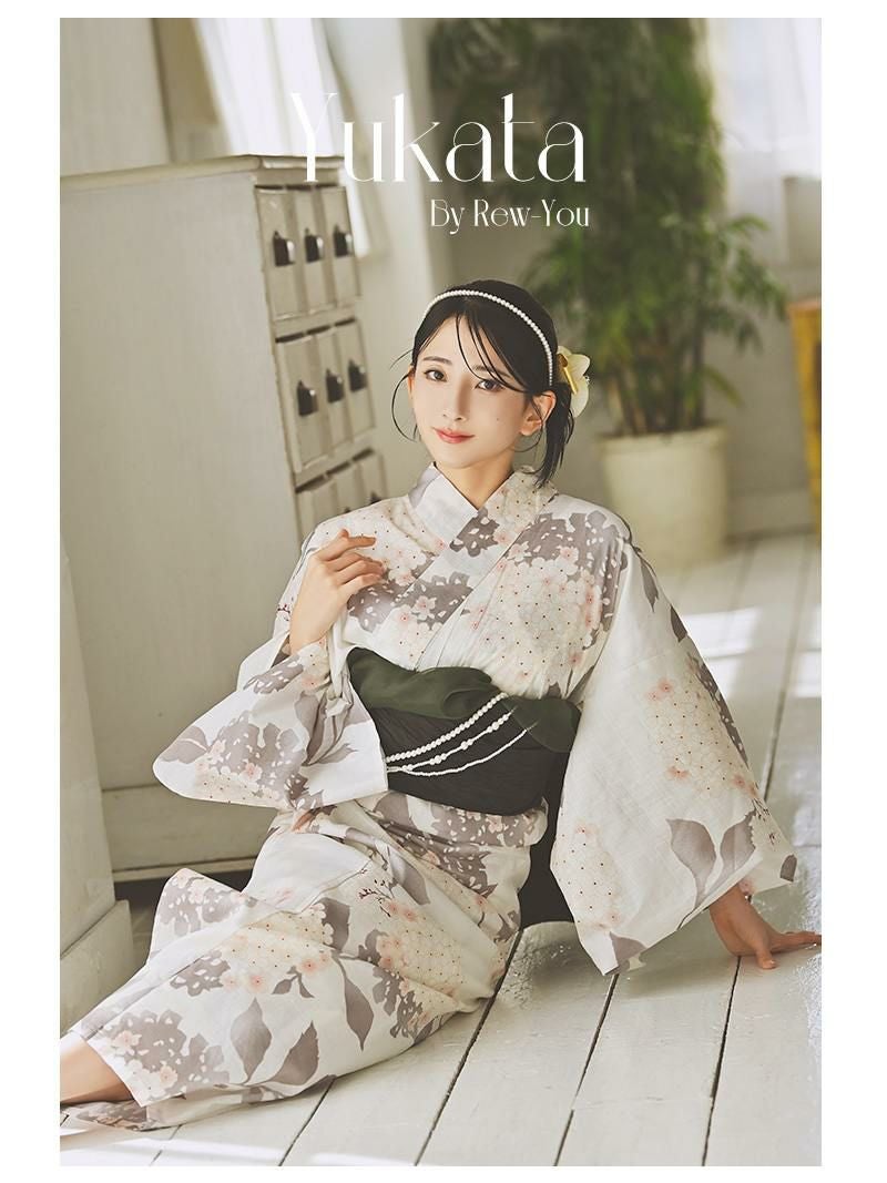 5. 浴衣 古典桜のくすみカラーレディース浴衣セット【Ryuyu】(フリーサイズ)(ホワイト)