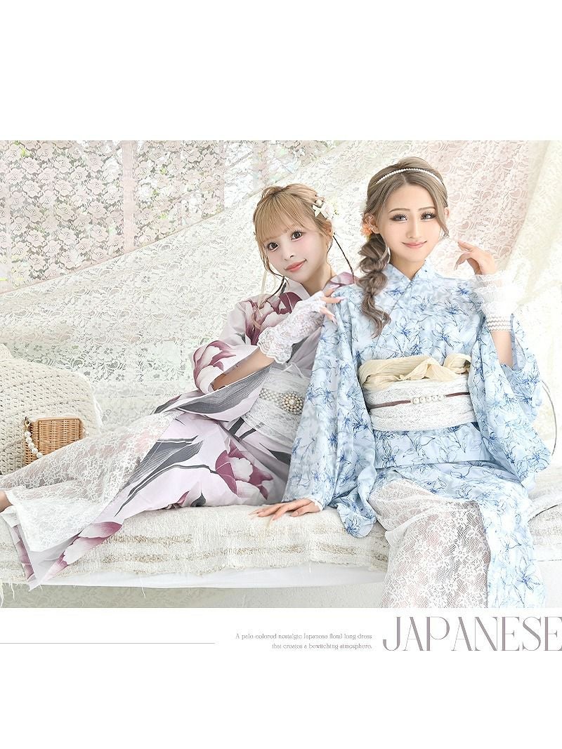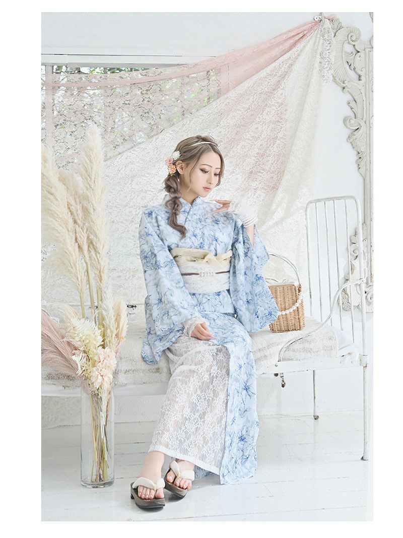 ニュアンスブルーがおしゃれなギャル浴衣と上品なレースの組み合わせで周囲を圧倒させるレディース浴衣です。