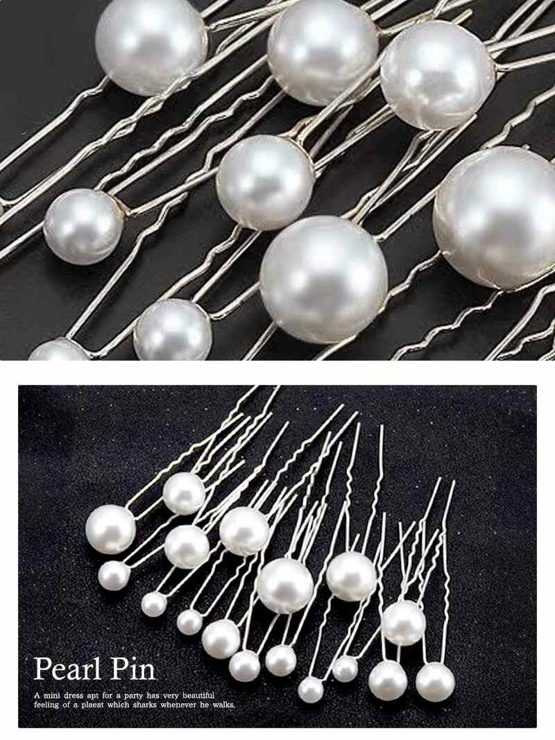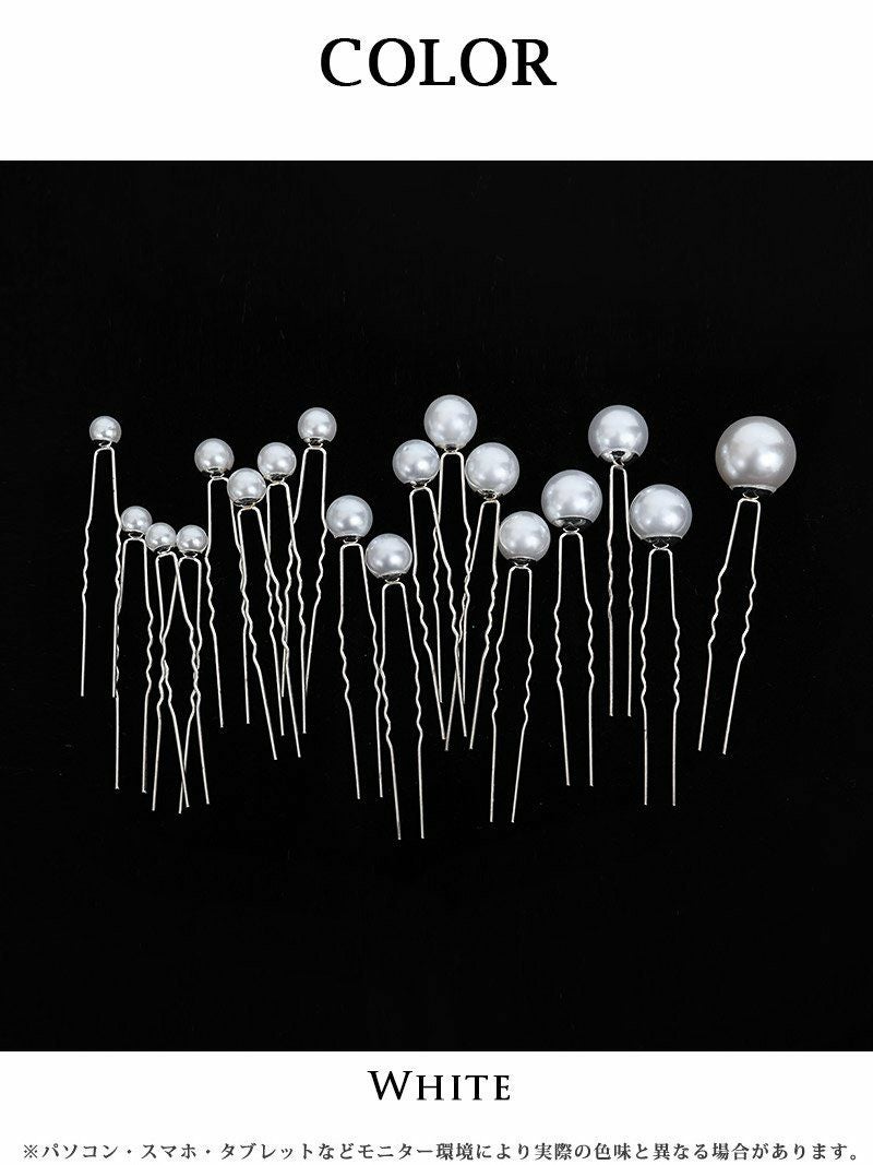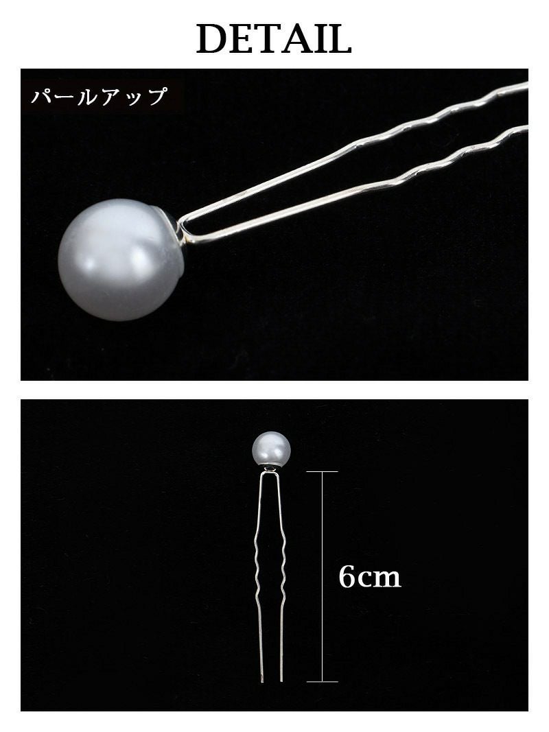 大小のパールが輝くヘアピンは、髪の毛にエレガントなアクセントを与えます。