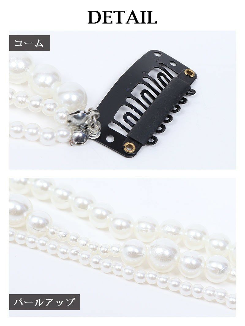 簡単にヘアアレンジが楽しめるキャバカワアイテム パールラインーポニーヘアアクセサリー【Ryuyu】(フリーサイズ)(ホワイト)