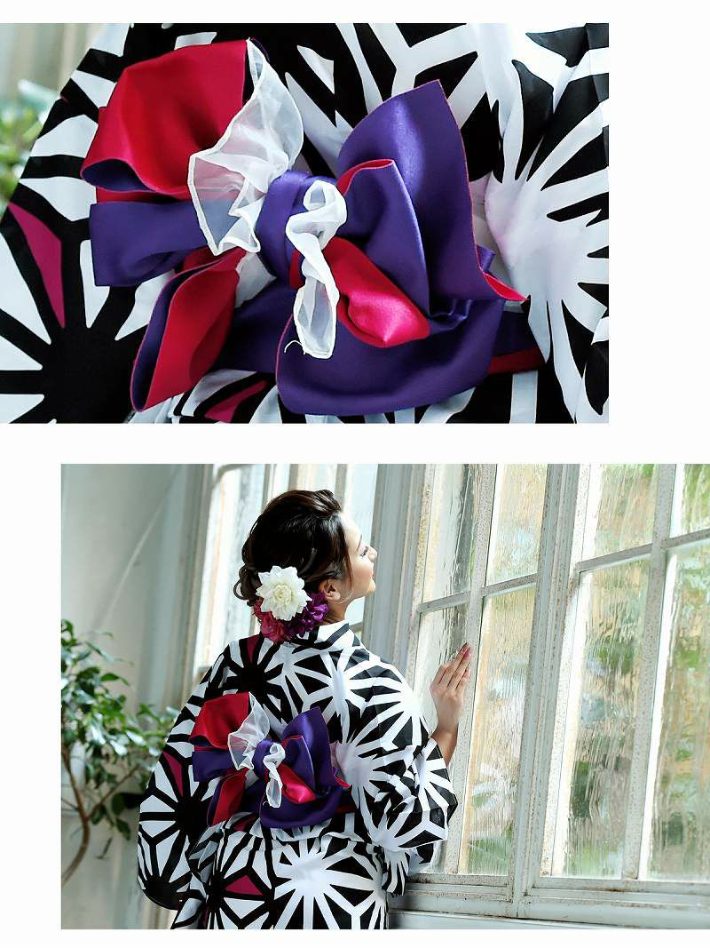 半幅帯がチェリー×濃紫カラーでリバーシブルタイプになっているのでその日の気分に合わせてカラーや結び方もアレンジできます。