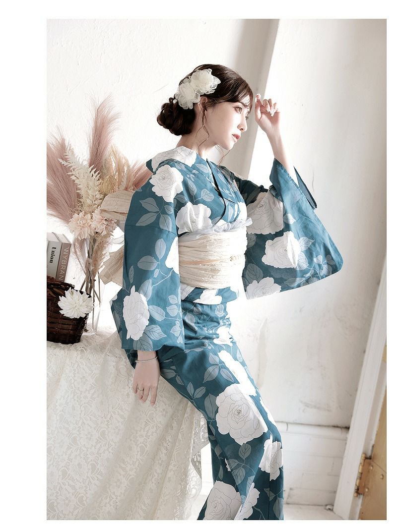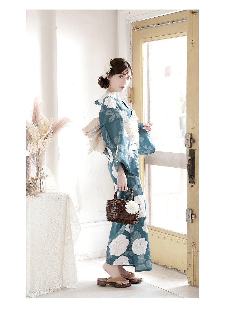 浴衣 青×ターコイズ 牡丹レトロモダンレディース浴衣 加賀美早紀 着用 2点セット浴衣【Ryuyu】