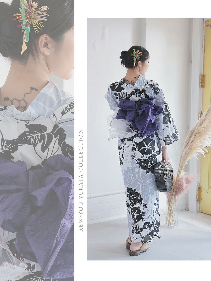 花柄が華やかに映え、着る人の魅力をぐっとアップさせる大人浴衣になっています。