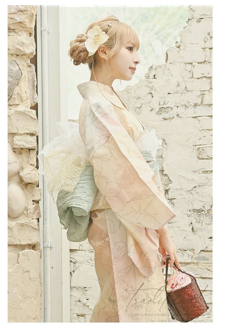 大人可愛いピンクベージュが女の子らしさ溢れるレディース浴衣。