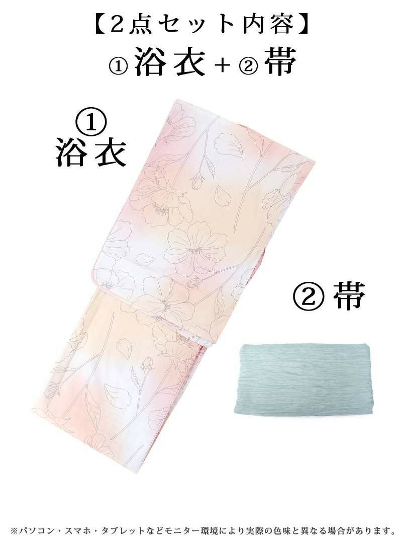浴衣:綿100%、帯:ポリエステル100%