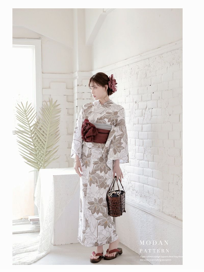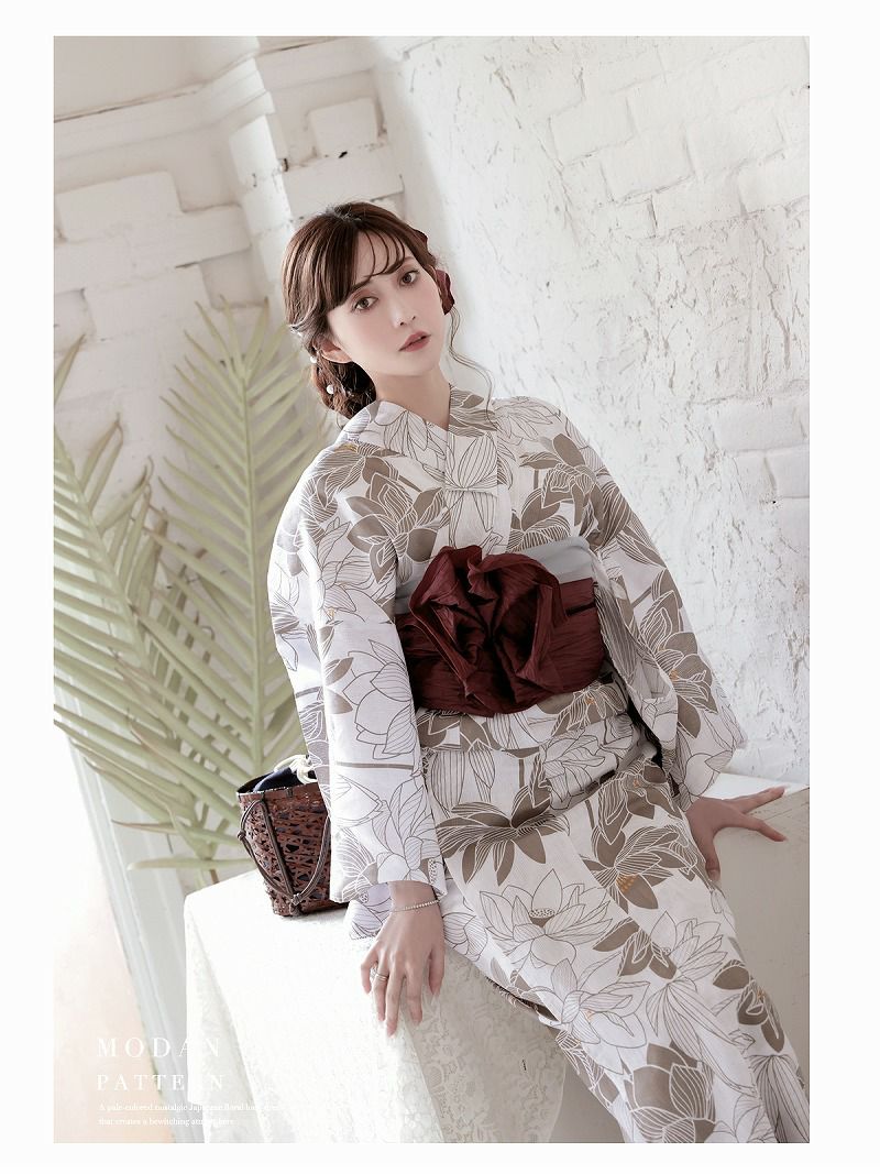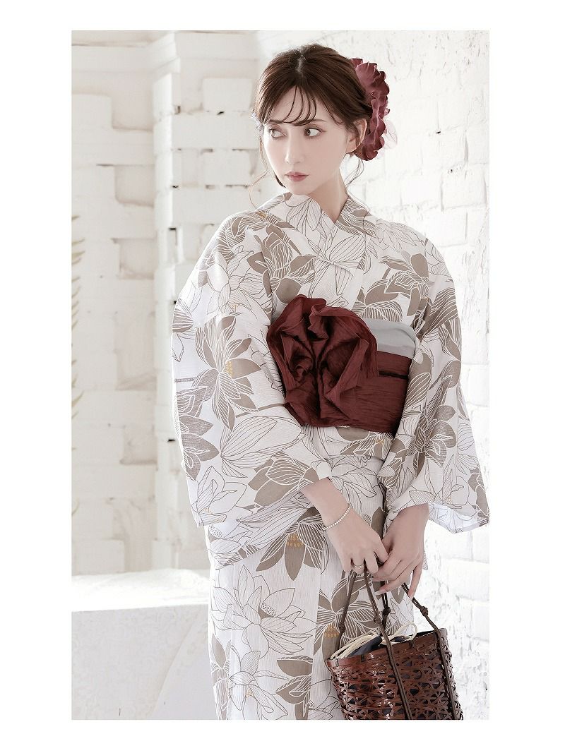 色気溢れる白×ベージュの配色が男心をくすぐるレディース浴衣です。