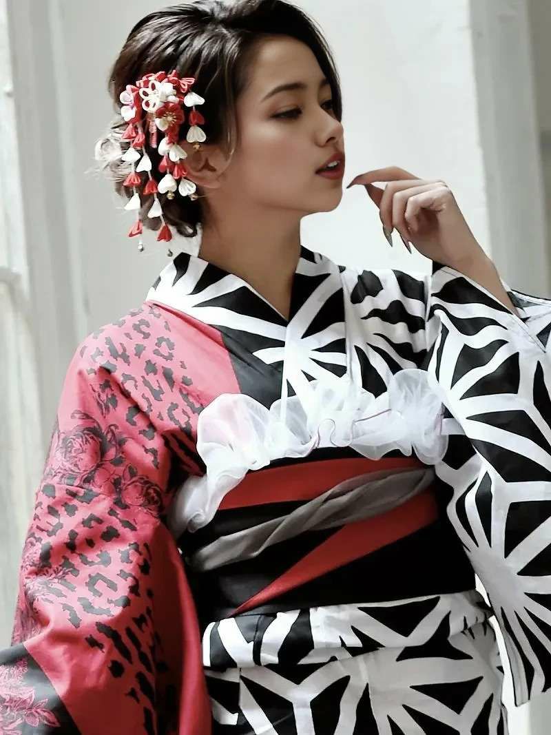 レオパードとリーフ柄がSNS映えもばっちりだからイベントでもSNSでも誰よりもかわいいギャルゆかた♪
