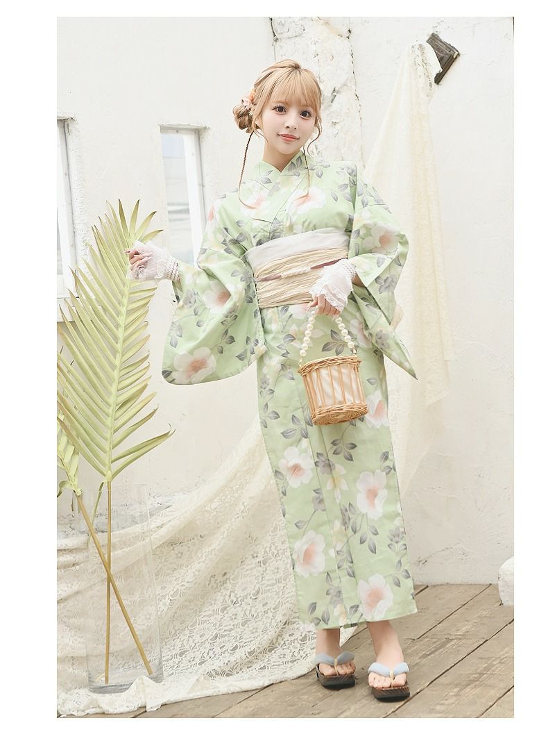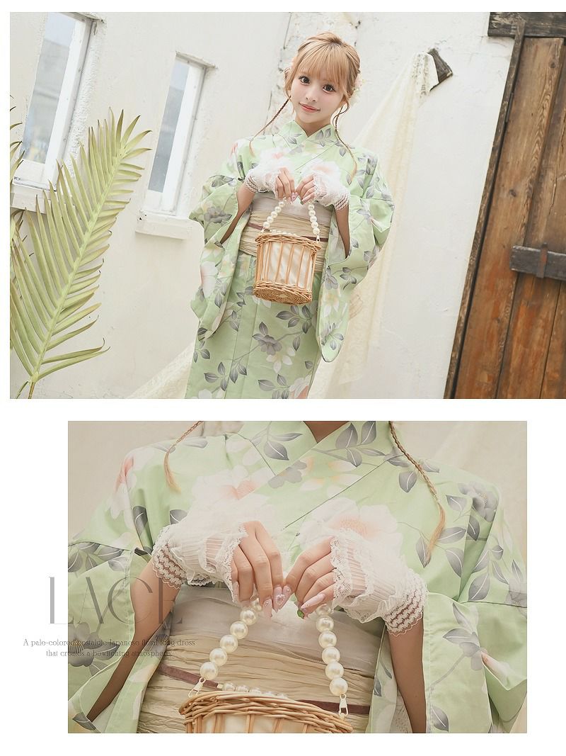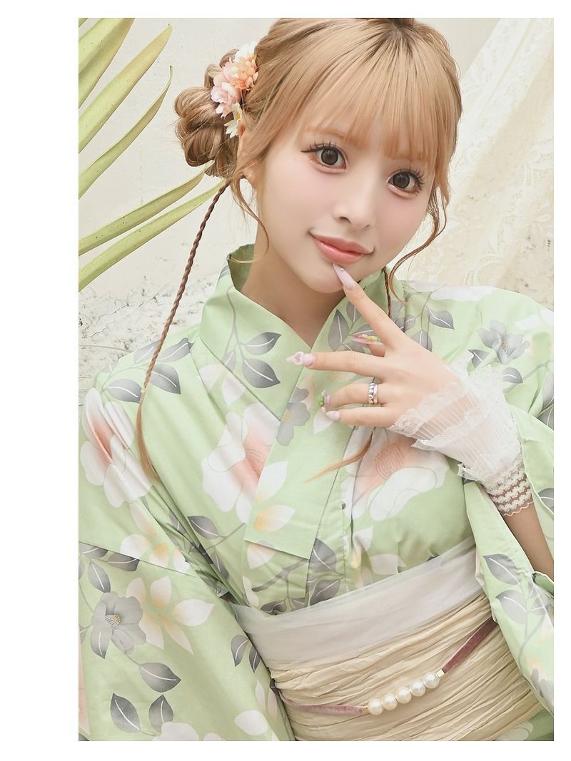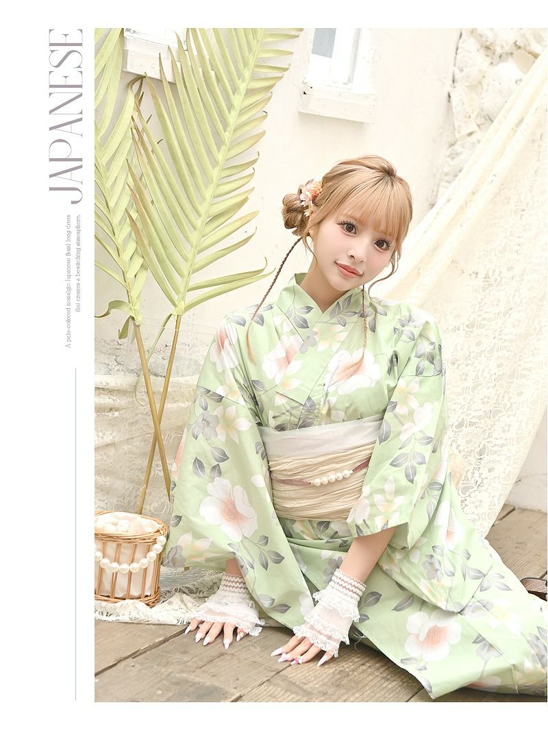 4. 浴衣 華やかグリーンに牡丹がかわいいセパレート浴衣 あいさ 着用 ギャルゆかた2点セット【Ryuyu】(フリーサイズ)(ライトグリーン)