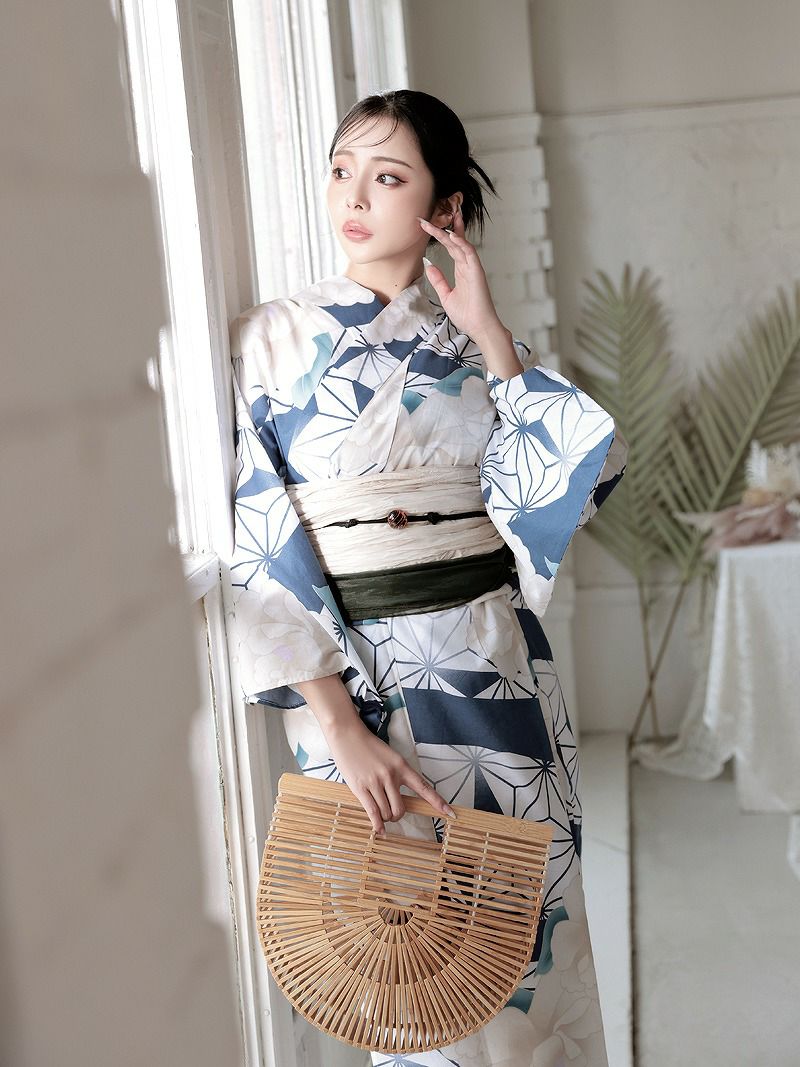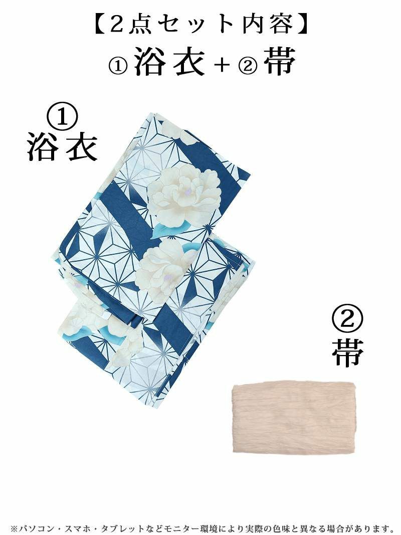浴衣:綿100%、帯:ポリエステル100%