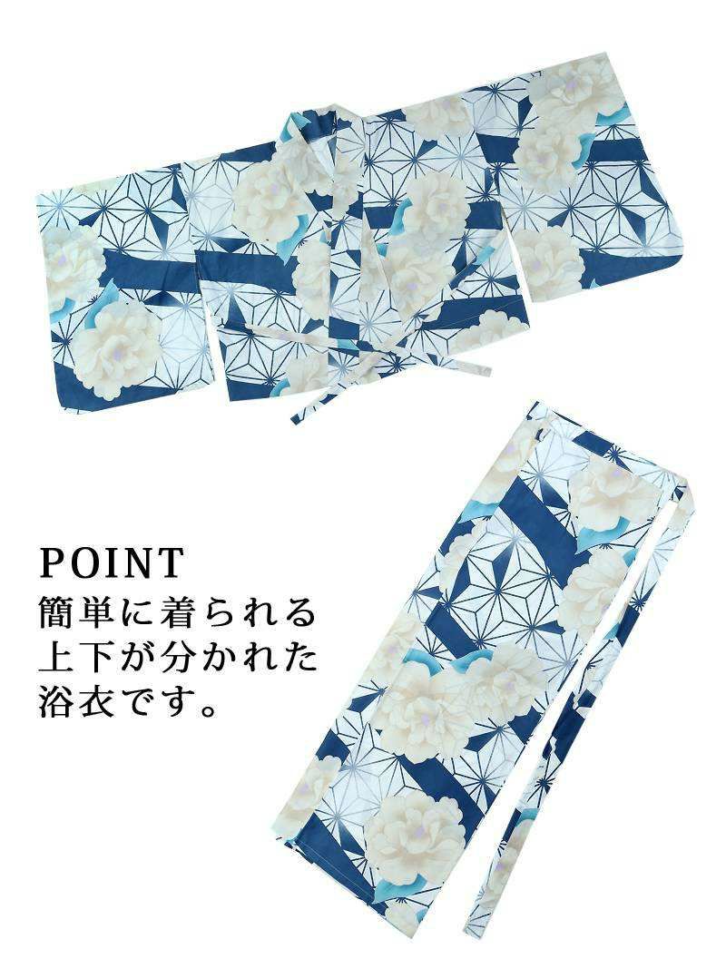 浴衣 レトロモダンなブルーリーフに咲く牡丹レディースセパレート浴衣 KANO 着用 二部式浴衣【Ryuyu】