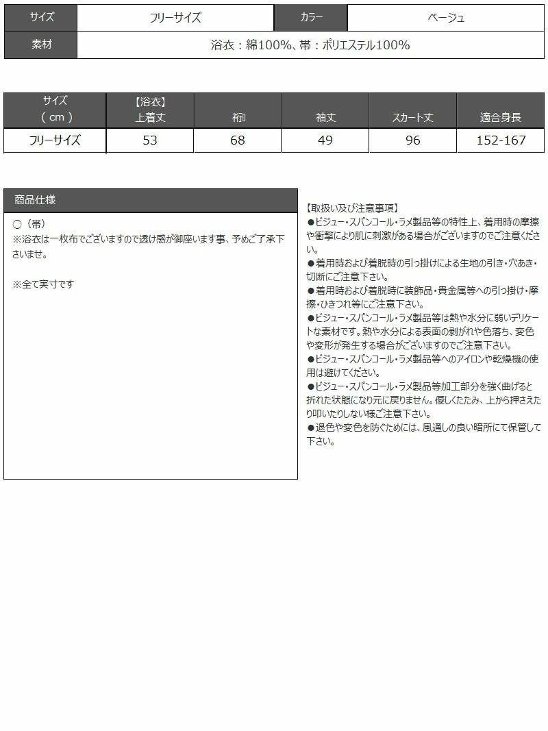 浴衣:綿100%、帯:ポリエステル100%