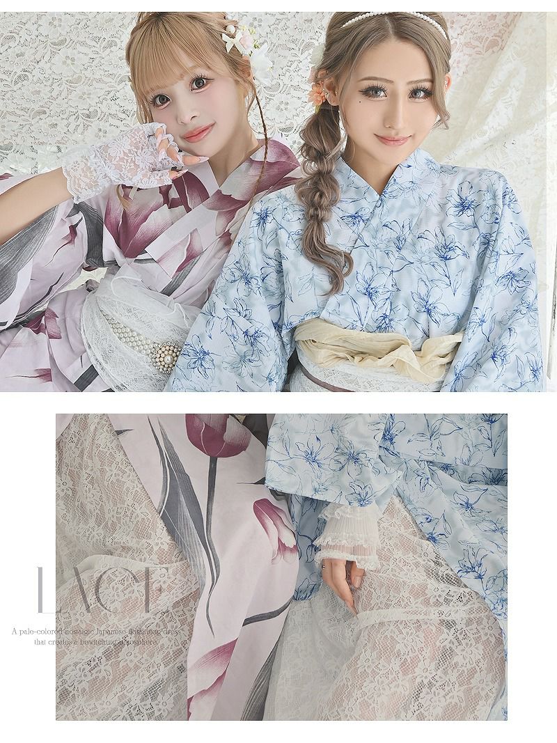 もちろん浴衣のデザインも可愛い系から綺麗め、色も主要な白・黒・ピンク・青などはもちろん揃っているのであなたがほしいデザインの浴衣・帯セットがレディース浴衣通販Rew-Youではきっと見つかりますよ♥