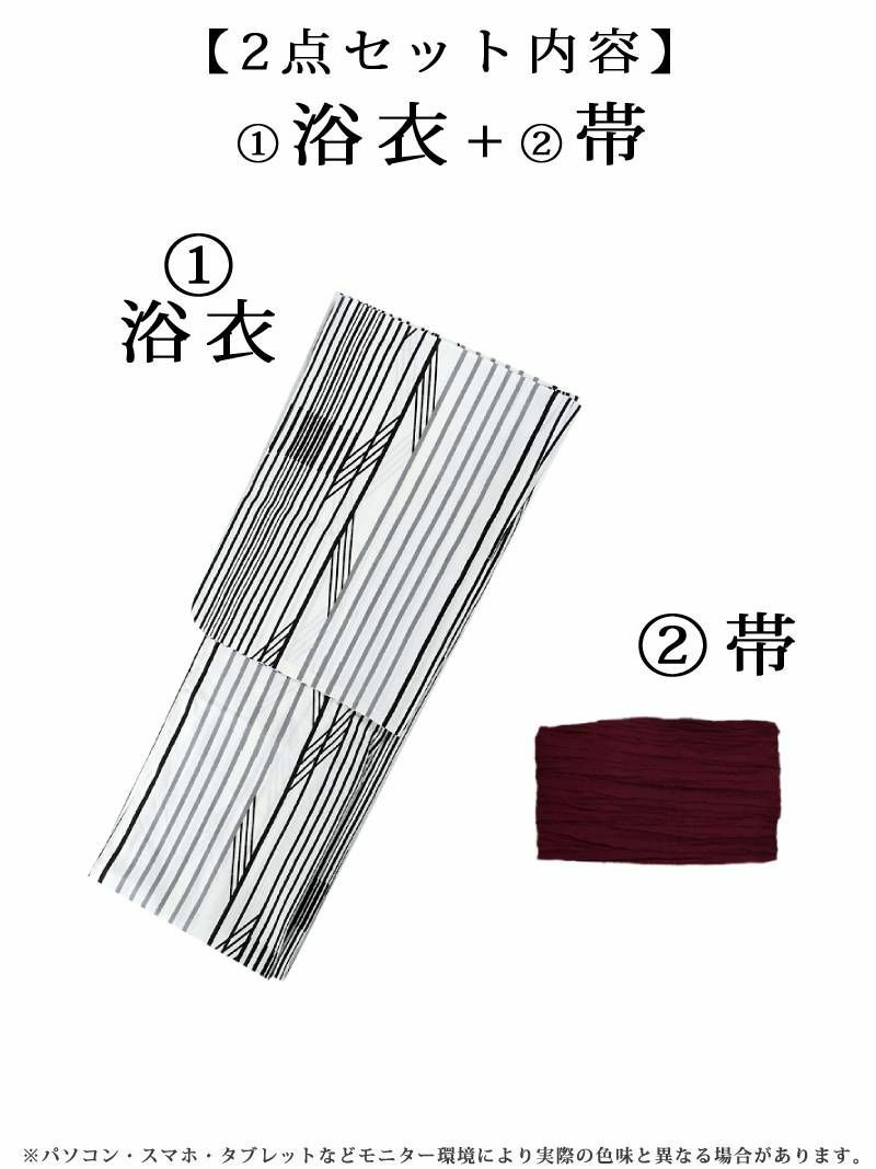 種類も様々で帯は平帯・作り帯・兵児帯などがセットになった2点セット浴衣をご用意。