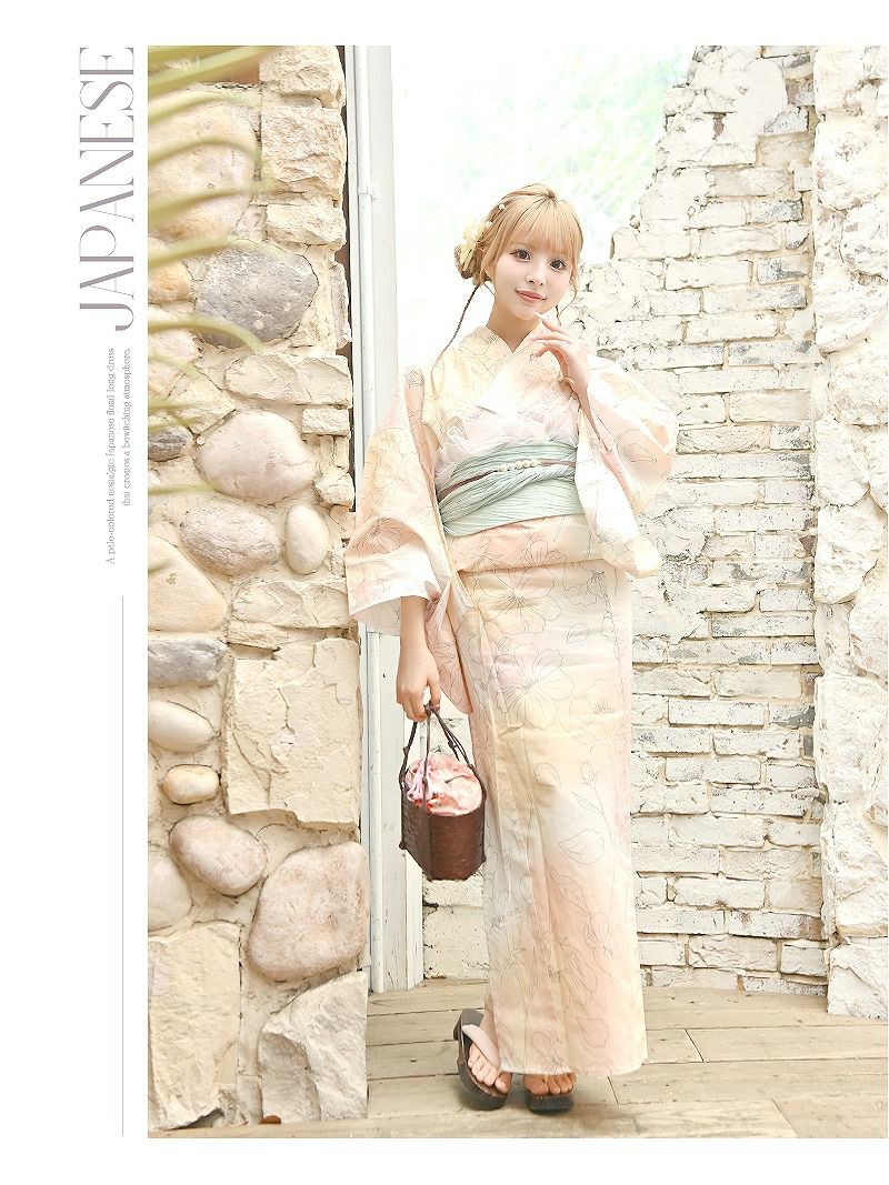 大人可愛いピンクベージュが女の子らしさ溢れるレディース浴衣。