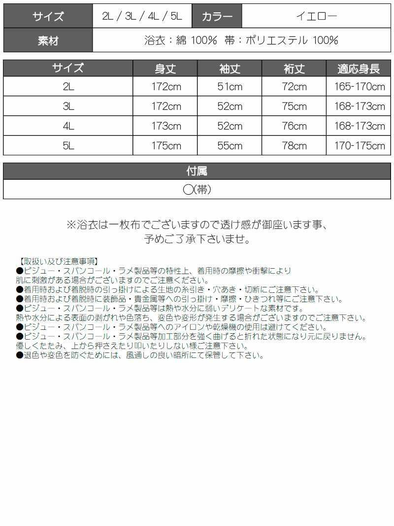 5. 浴衣 ヘルシーフラワー柄大人イエロートールサイズ浴衣2点セット【Ryuyu】(2L/3L/4L/5L)(イエロー)