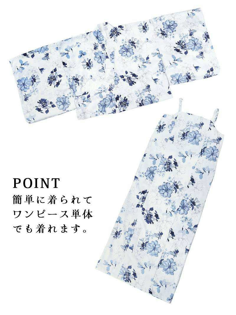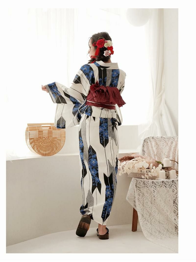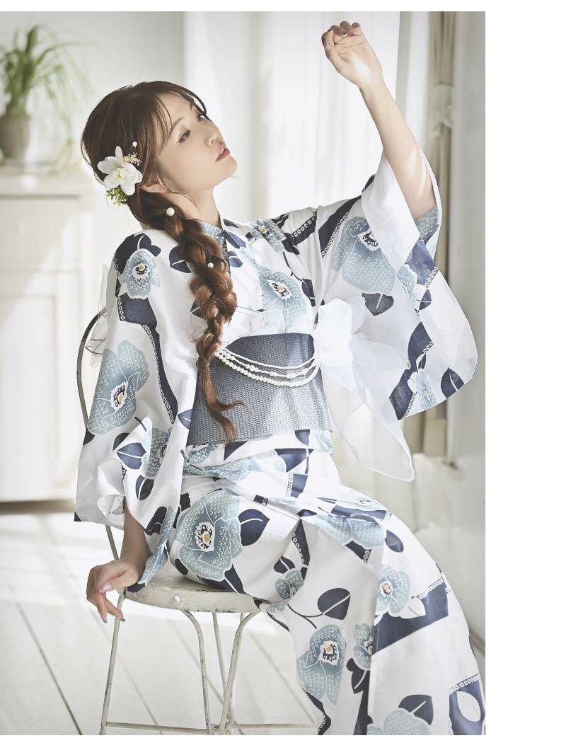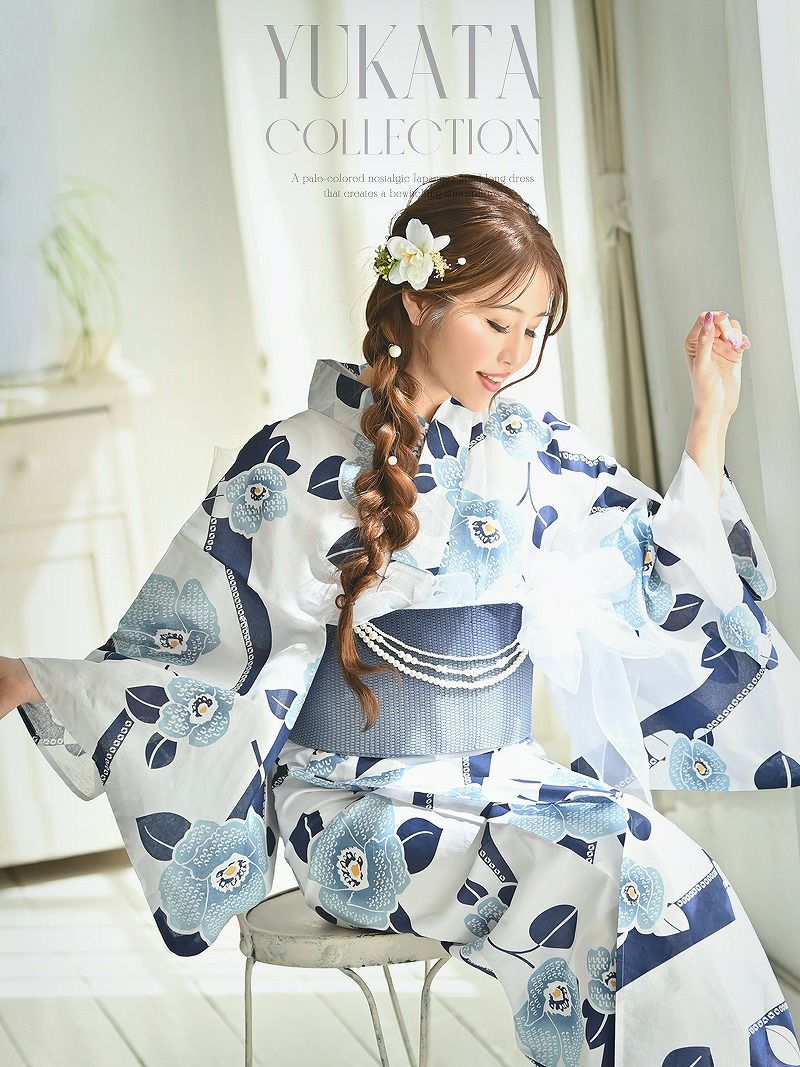 大人可愛い白色ゆかたは男子ウケも女子ウケも抜群 浴衣 白地×椿大人可愛い紺レディース浴衣3点セット えがさり着用女性用ゆかた【Ryuyu】(フリーサイズ)(ホワイト)