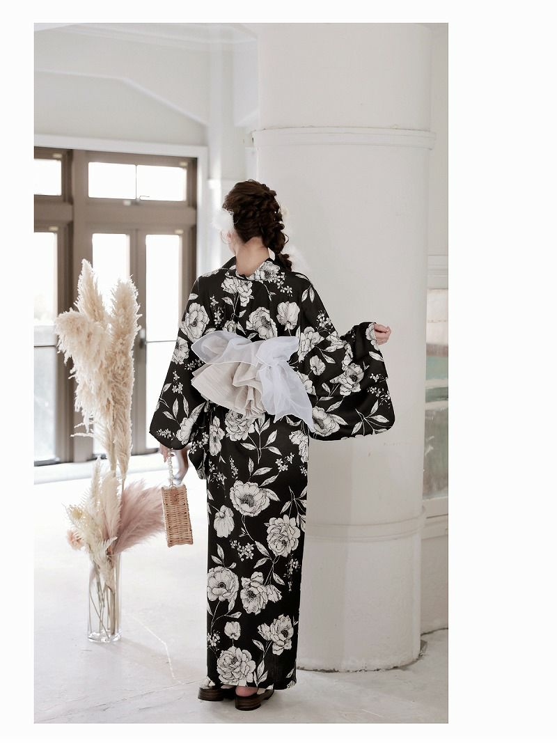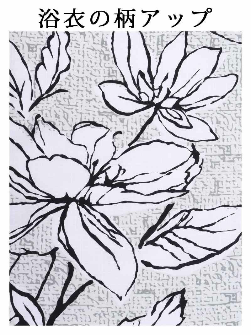 • 浴衣 白黒フラワーで色気纏う古典柄レディース浴衣 KANO 着用 大人浴衣【Ryuyu】(フリーサイズ)(ホワイト)