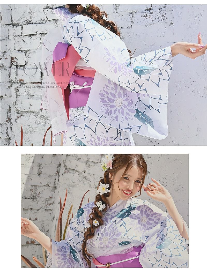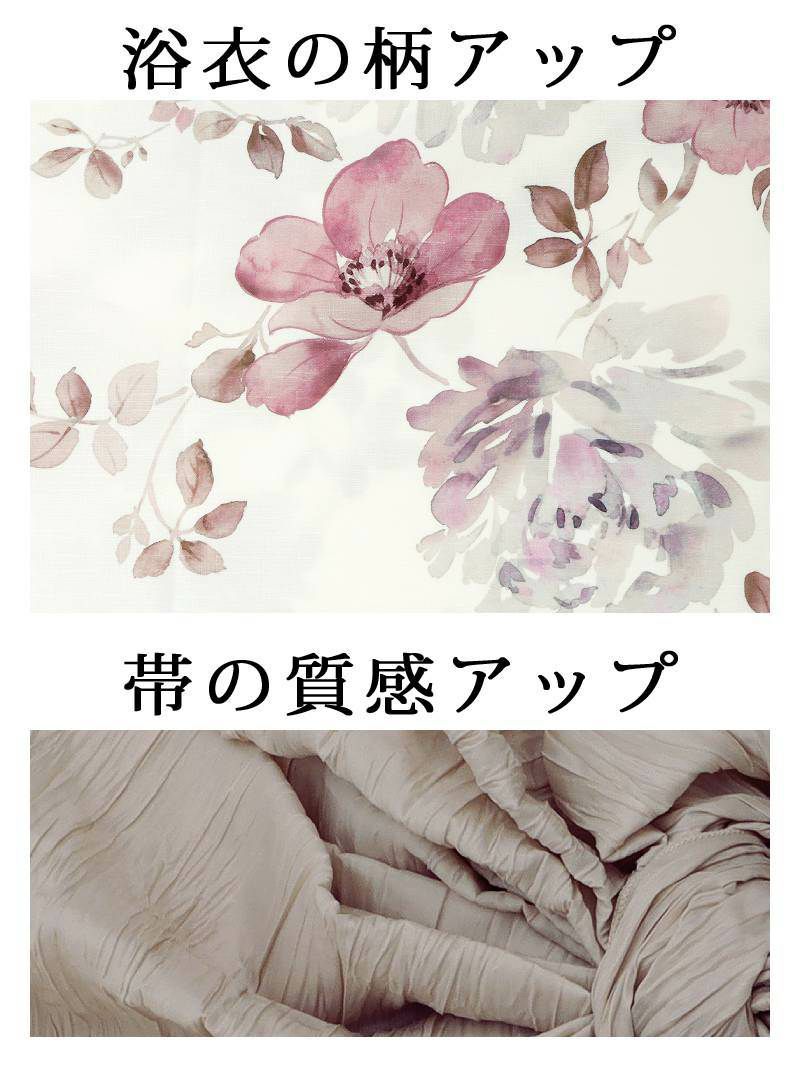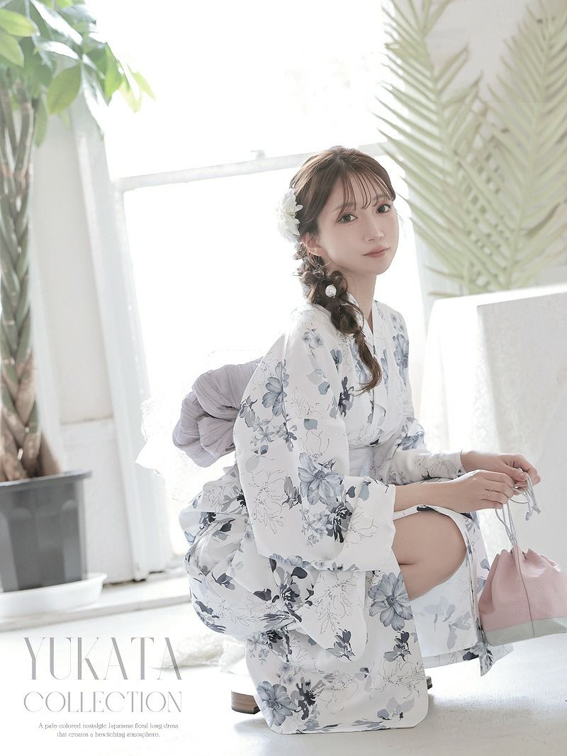 お得 トレンドぼかし花柄で夏のモテどUP! 浴衣 淡色花柄ギャル浴衣 あいさ 着用 レディースゆかた 帯2点セット【Ryuyu】(フリーサイズ)(ホワイト)
