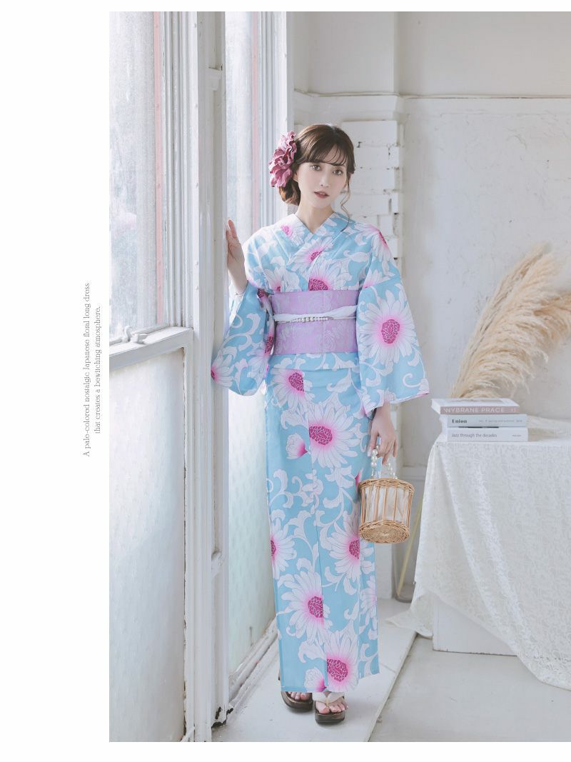 鮮やかなパステルカラーで涼し気ギャル浴衣 浴衣 水色 パステル桜柄派手かわギャル浴衣 あいさ 着用 レディースゆかた3点セット【Ryuyu】(フリーサイズ)(ブルー)