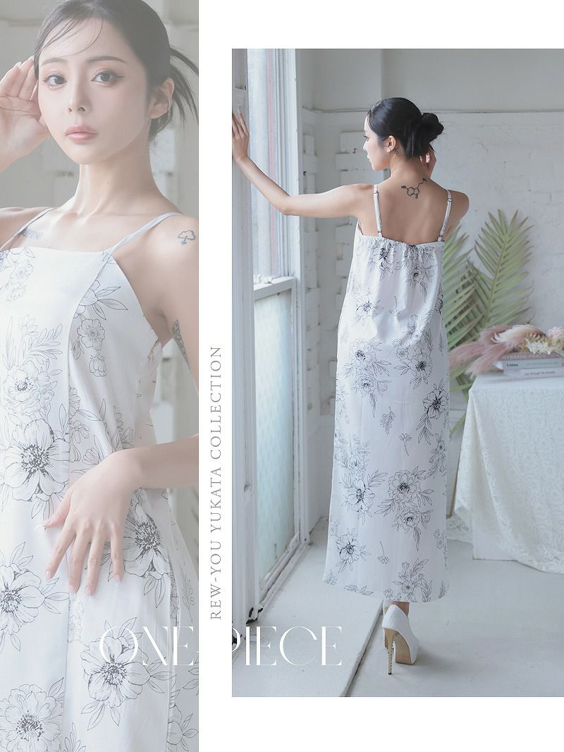妖艶な雰囲気が奥ゆかしさ感じるセット浴衣。 浴衣 水墨画デザインシックな大人レディース浴衣2点セット KANO 着用 キャバゆかた【Ryuyu】(フリーサイズ)(ホワイト)