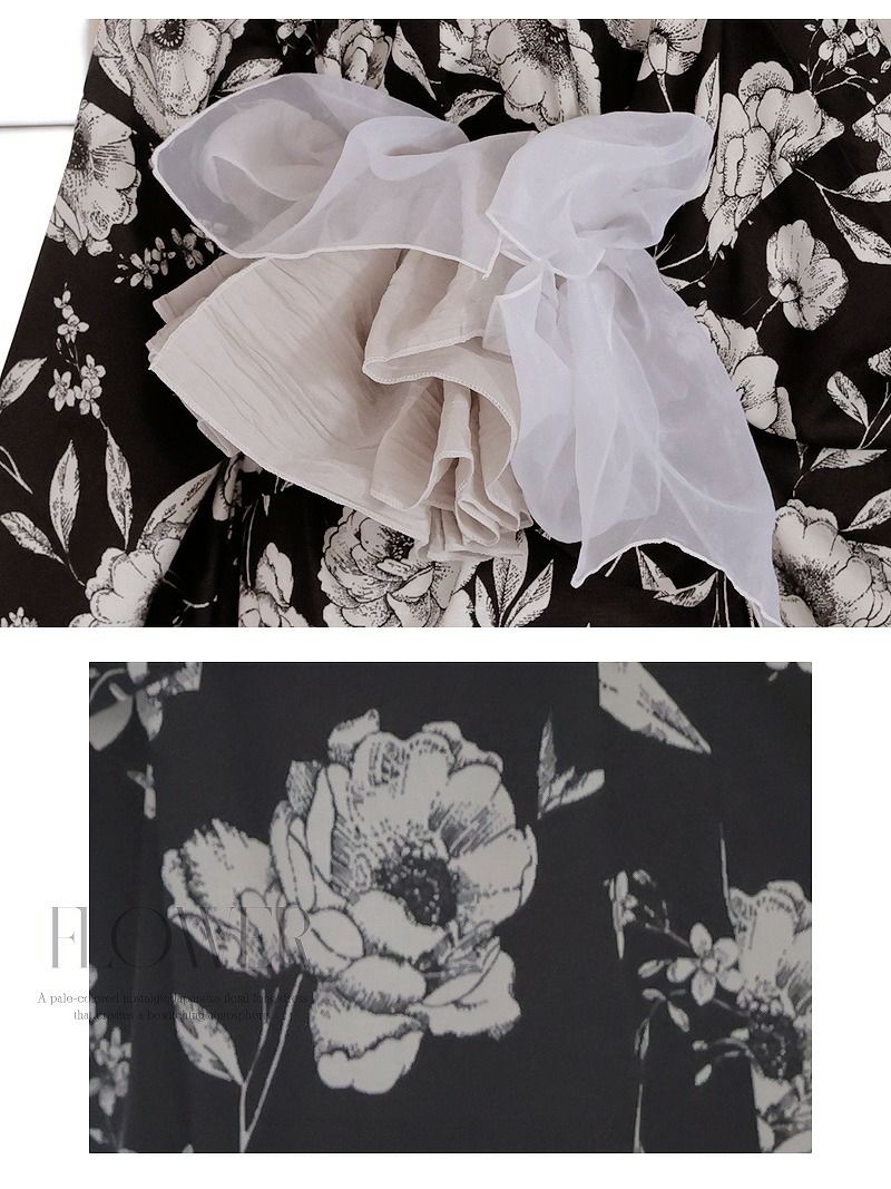 魅力的な大人モノトーン浴衣 浴衣 黒地モノトーン菊柄キャバ浴衣【Ryuyu】レトロモダン大人ゆかた作り帯3点セット(フリーサイズ)(ブラック)