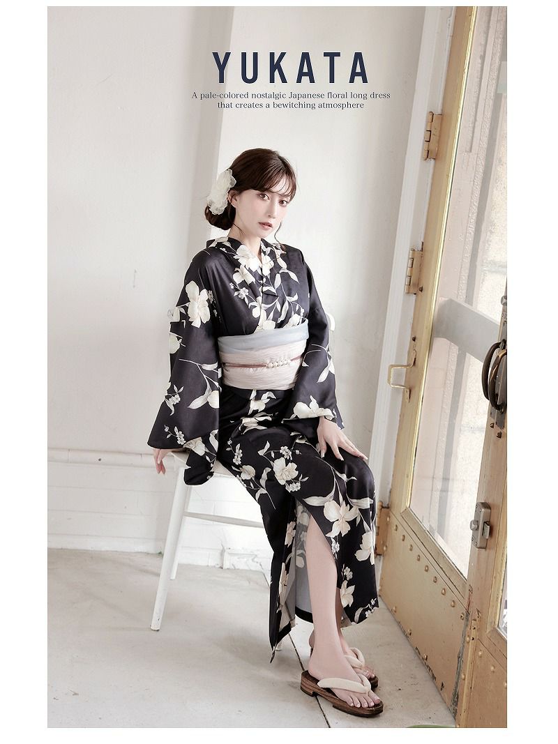 妖艶に色っぽさを醸し出す。 浴衣 ブラックカラー×菊柄大人上品セパレート二部式浴衣 KANO着用【Ryuyu】(フリーサイズ)(ブラック)