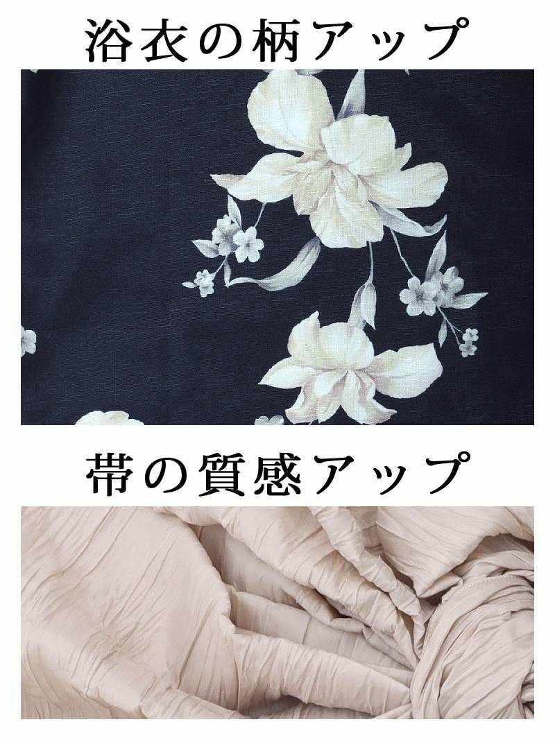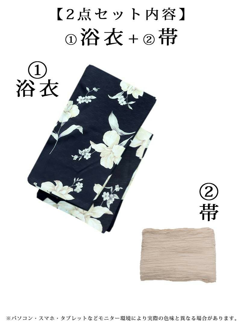 浴衣 ベージュ×ブラックでシックにまとめた花柄レディース浴衣 加賀美早紀 着用 大人浴衣2点セット【Ryuyu】(フリーサイズ)(ベージュ)