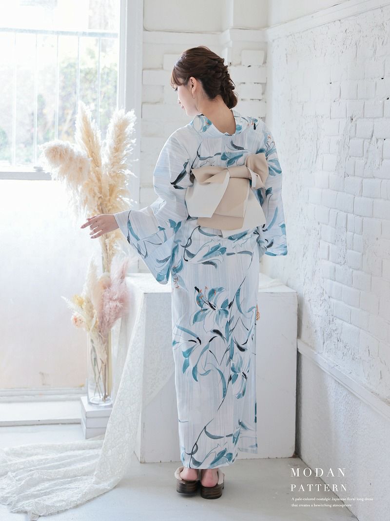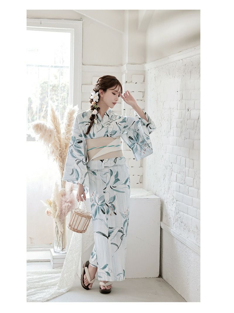 • 浴衣 白地にネイビーカラーの百合柄高級浴衣 KANO 着用 レディースゆかた【Ryuyu/リューユ】(フリーサイズ)(ミント)