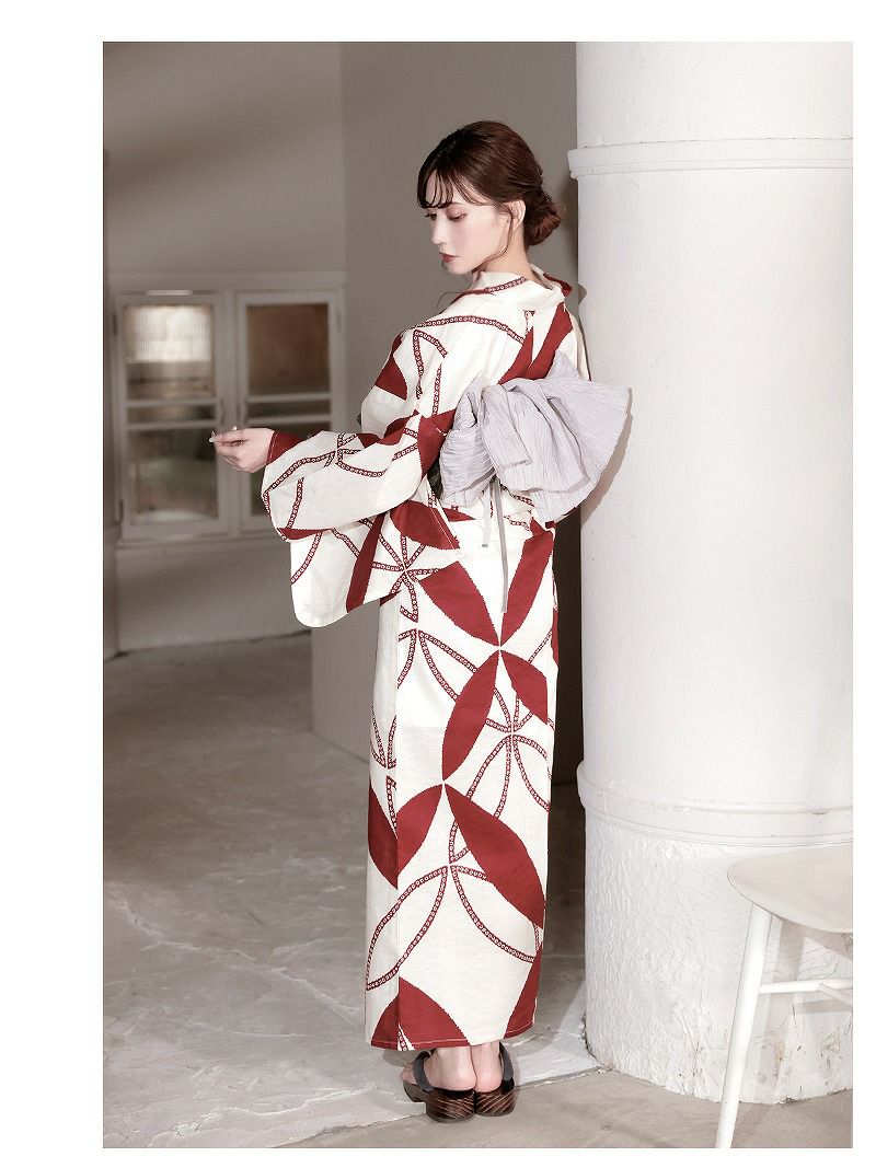清楚で色気漂う女艶な雰囲気 浴衣 cool矢絣(やがすり)柄大人浴衣2点セット【Ryuyu】(フリーサイズ)(ホワイトレッド)
