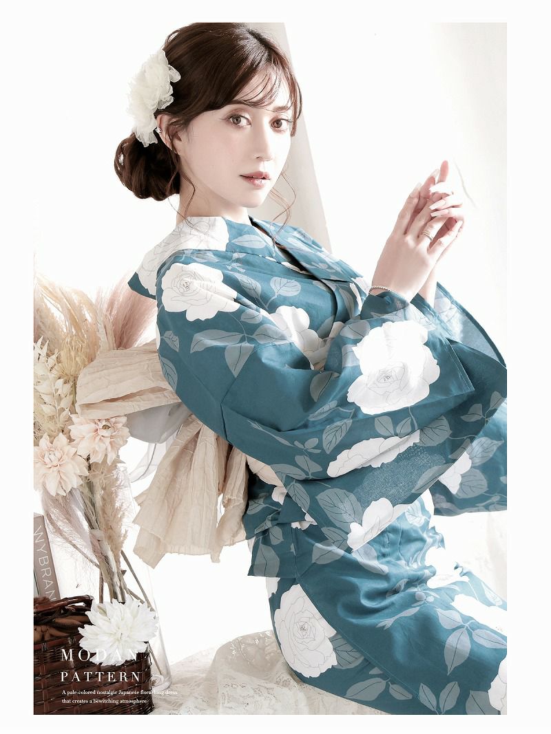 モードな雰囲気たっぷりの女艶浴衣 浴衣 modeLADY薔薇大花柄モード浴衣2点セット KANO着用 キャバゆかた【Ryuyu】(フリーサイズ)(ブルー)