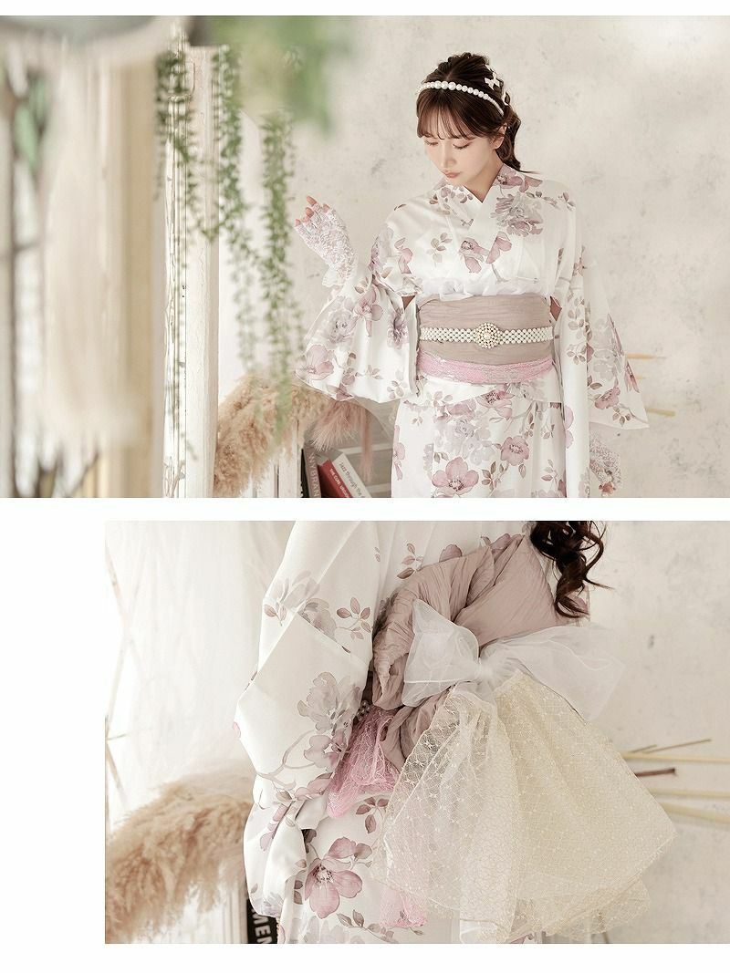 圧倒的に映えるレース浴衣 浴衣 ニュアンスブルー×上品レース浴衣 あいみん 着用 セパレート浴衣【Ryuyu】(フリーサイズ)(ホワイト)