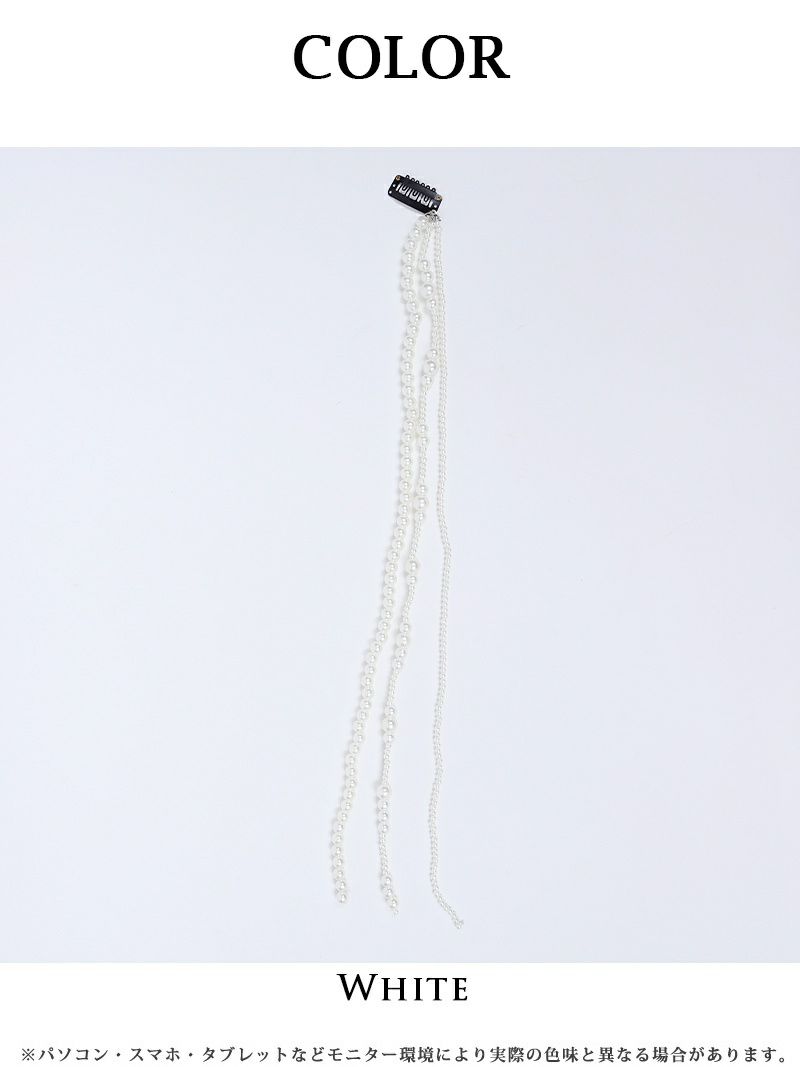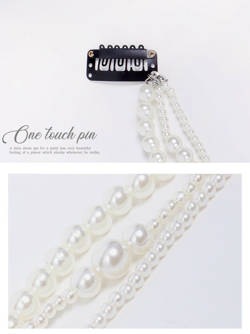 簡単にヘアアレンジが楽しめるキャバカワアイテム パールラインーポニーヘアアクセサリー【Ryuyu】(フリーサイズ)(ホワイト)
