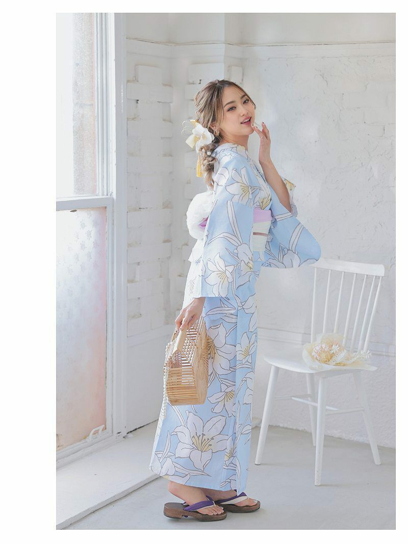 フェミニンに可愛く映える青色浴衣♪ 浴衣 ペールブルー百合柄レディース浴衣2点セット ゆずは 着用 ギャルゆかた【Ryuyu】(フリーサイズ)(ブルー)