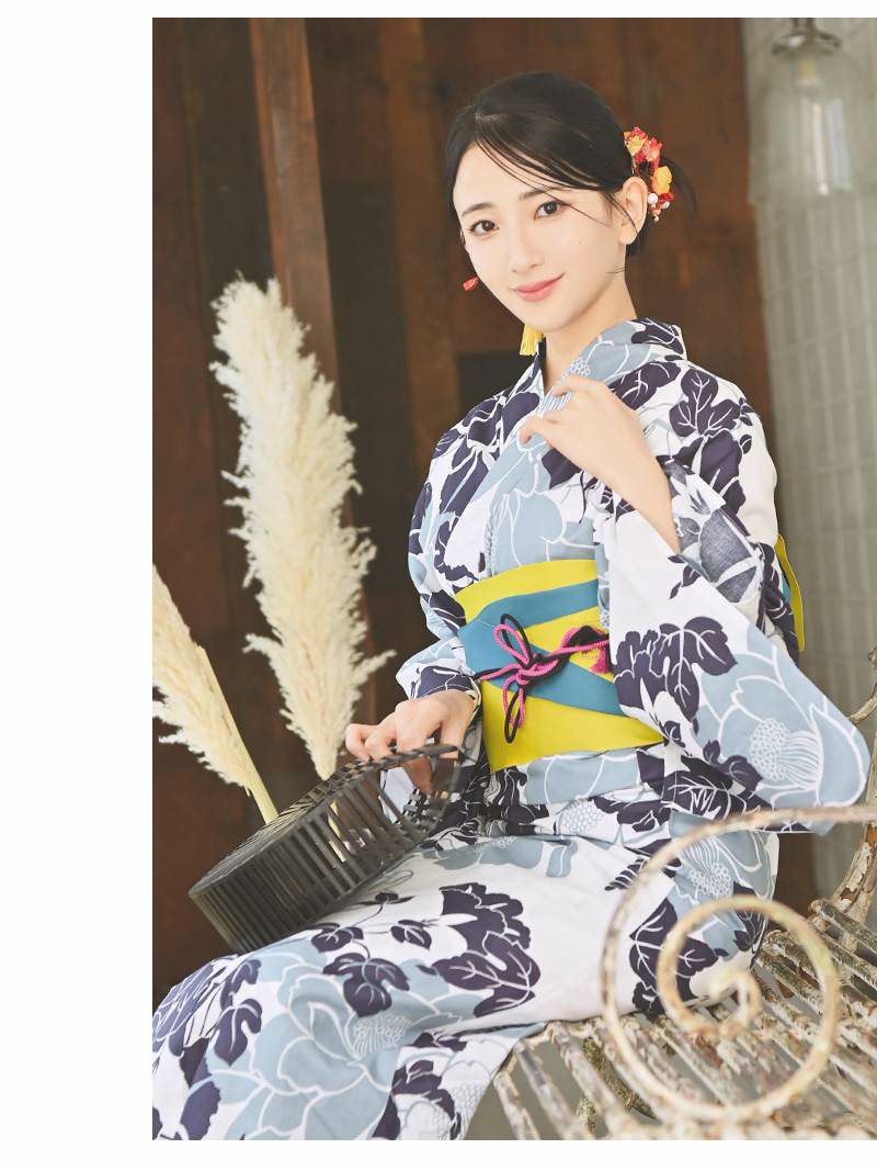 映える古典柄浴衣で夏を盛り上げる 浴衣 レトロモダンなブルーリーフに咲く牡丹レディースセパレート浴衣 KANO 着用 二部式浴衣【Ryuyu】(フリーサイズ)(ホワイト)