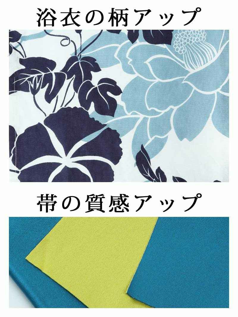 大人可愛いが叶う、甘め×華やか浴衣 マリンブルーにパープルフラワーが華やかなレディース浴衣2点セット【Ryuyu】(フリーサイズ)(ミント)