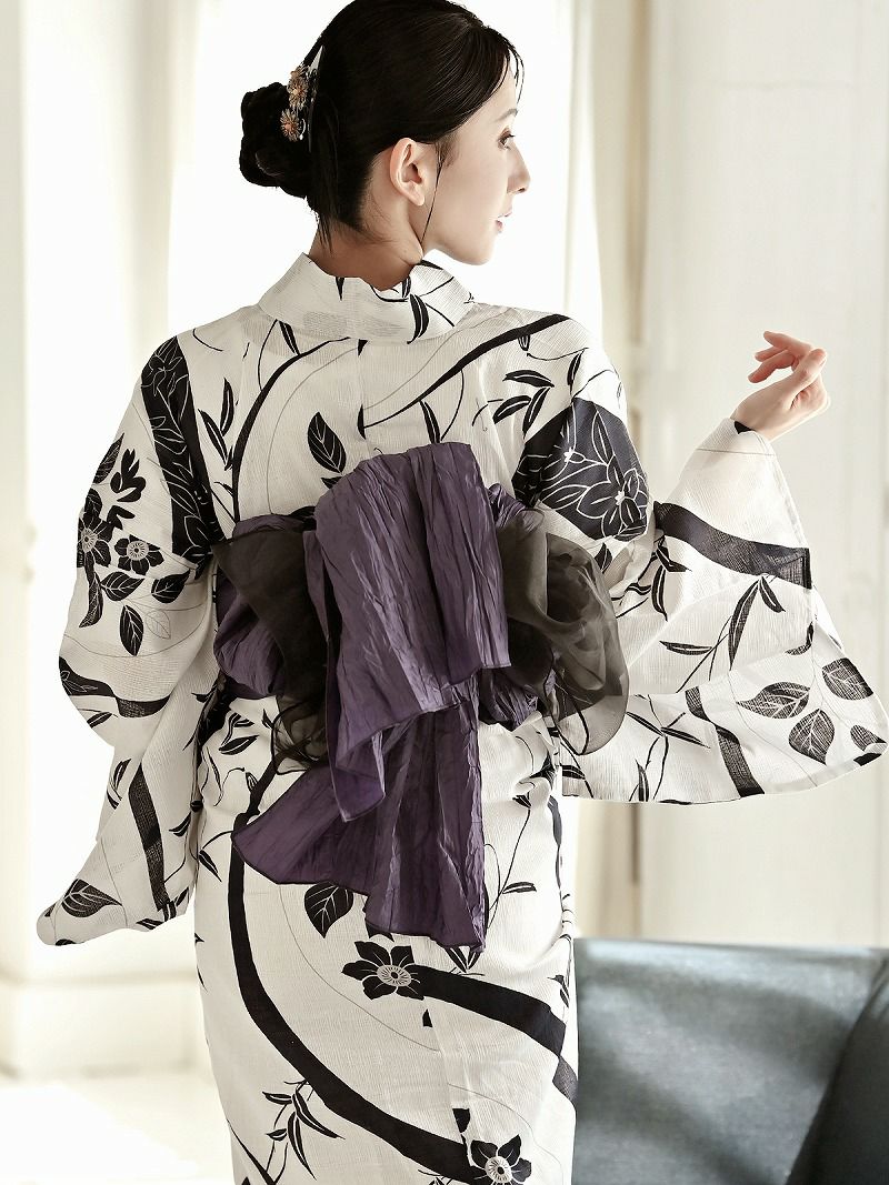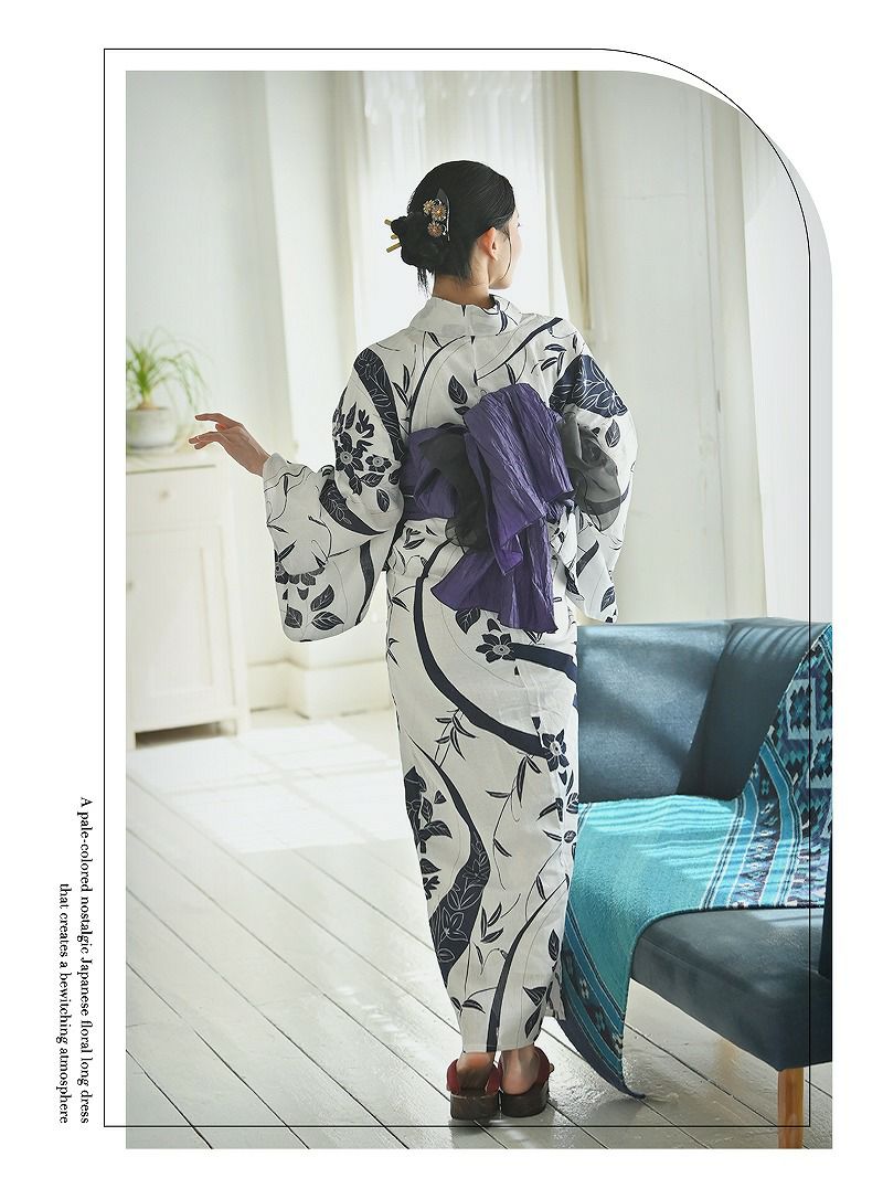 上品でセクシー、美しさが際立つモノトーン浴衣。 浴衣 白黒フラワーで色気纏う古典柄レディース浴衣 KANO 着用 大人浴衣【Ryuyu】(フリーサイズ)(ホワイト)