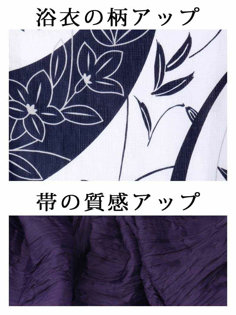 紺と紫が織りなす、大人かわいい浴衣スタイル♪ 浴衣 ネイビー&パープルフラワー大人レディース浴衣2点セット【Ryuyu】(フリーサイズ)(ネイビー)