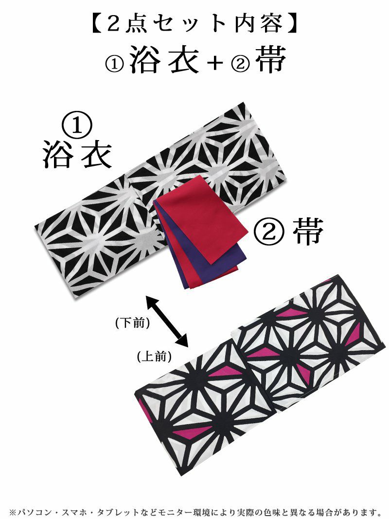 レトロだけど大人っぽく 浴衣 モノトーン麻の葉半身柄浴衣2点セット【Ryuyu】(フリーサイズ)(ホワイト)