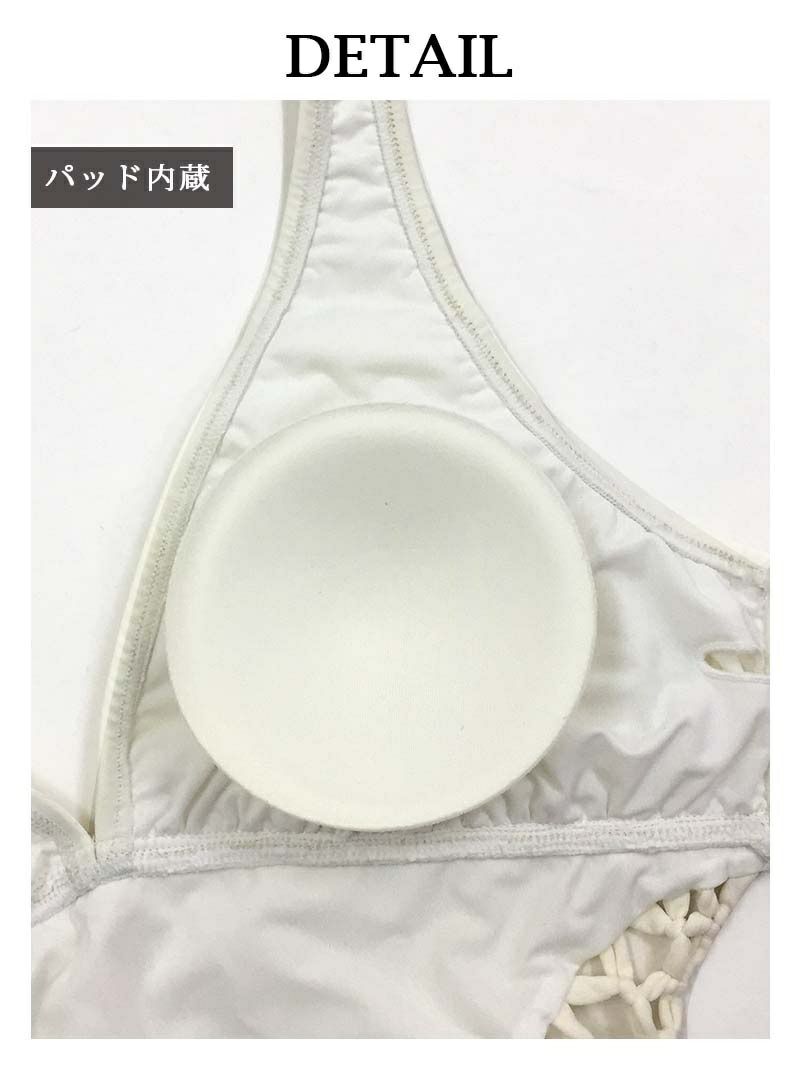 シンプルだけど個性的に 水着 ワンカラーウエストカットモノキニ【Ryuyu】(M/L)(ブラック/ホワイト)
