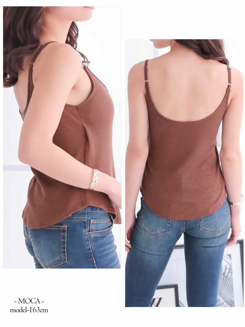 着ごこち◎カップ付きリブキャミ カップ付きバックオープンリブキャミソール【Rvate】(M/L)(杢グレー/ネイビー/ラベンダー/ピンク/モカ/グリーン/オレンジ)