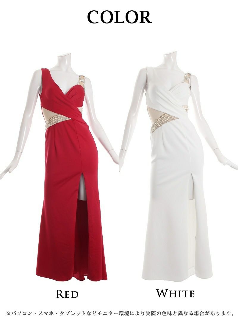 ウエストビジューがくびれをセクシーに強調 【Angel R/エンジェルアール】ビジュー付きアシンメトリータイトキャバドレス えがさり 着用ミニドレス(S/M)(ホワイト/ローズピンク/ブルー/ミントグレー)
