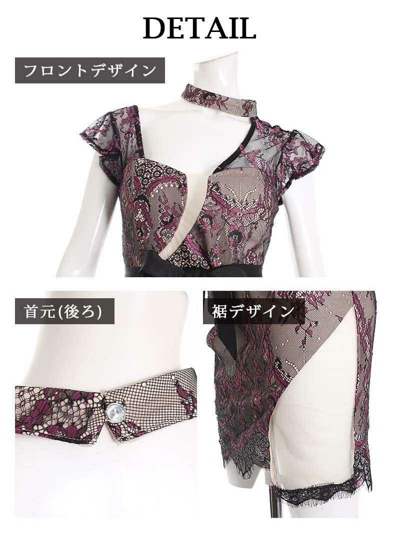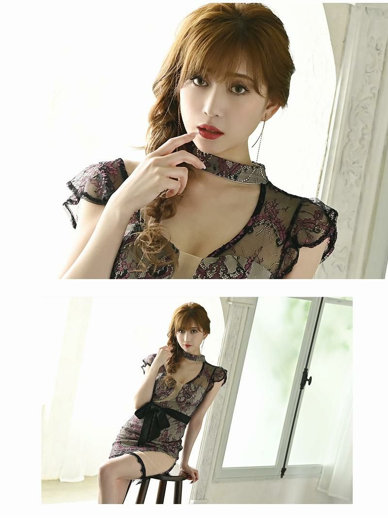 上品な女性らしさを演出 袖付き花柄切替キャバクラドレス ゆずは まぁみ 着用ミニドレス【Ryuyu】(S/M/L/XL)(ブラック/ホワイト) ptpl