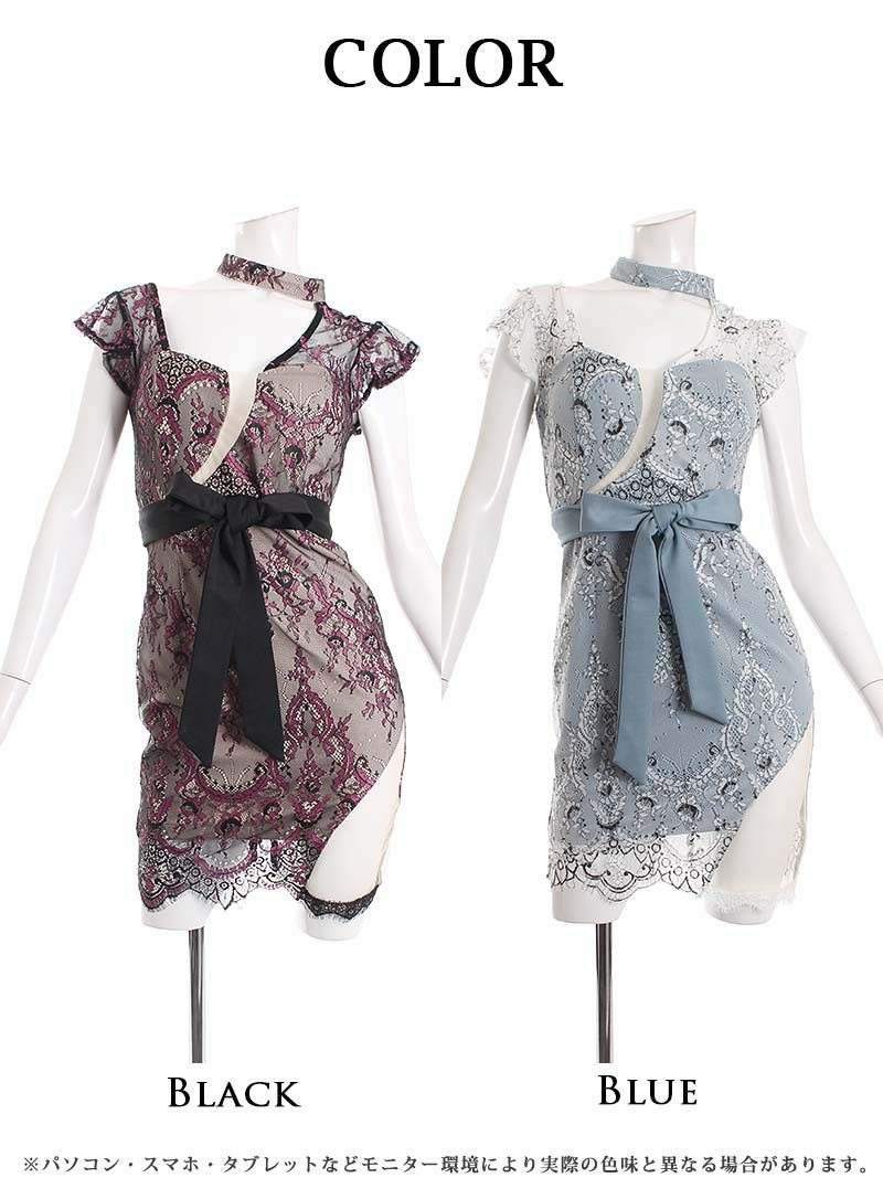 高級感ある花柄刺繍が施された 花柄刺繍レースペプラム袖付きキャバドレス まぁみ みりちゃむ 着用ミニドレス【Ryuyu】(S/M/L)(ブルー/イエロー/ピンク) ptpl