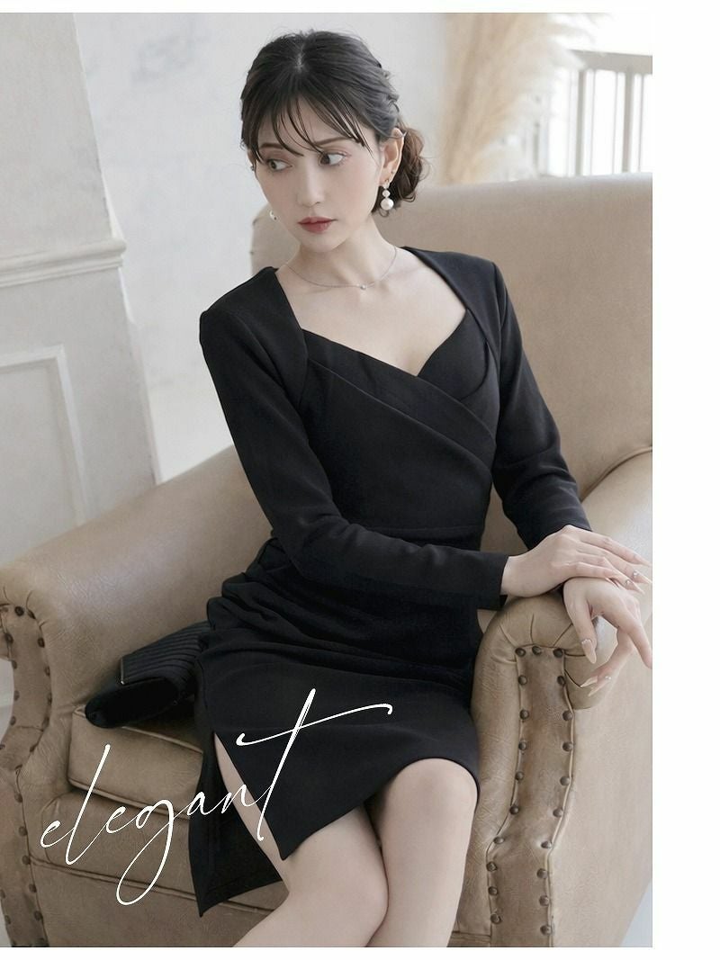 重なり合うカシュクール風のデザインが、バストラインを美しく立体的に魅せるキャバワンピースです!