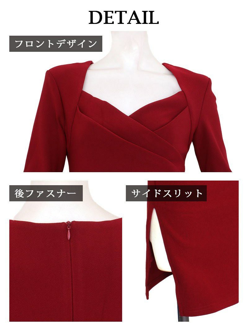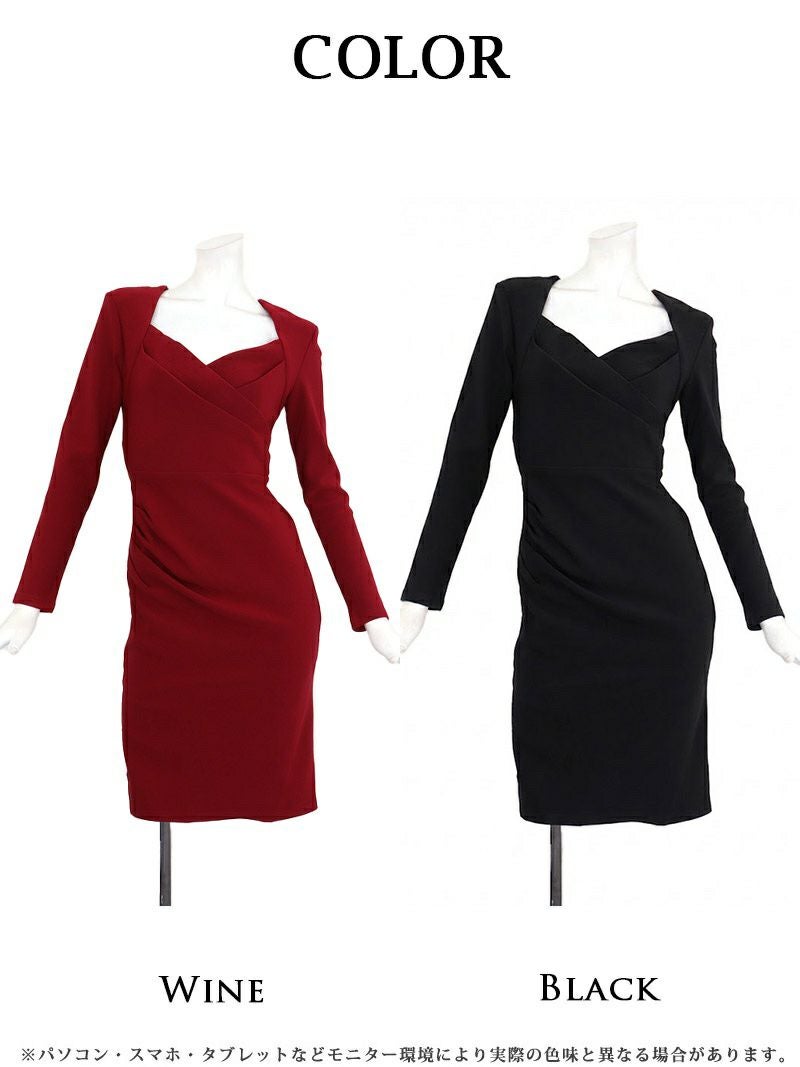 5. クロスデザインの胸元が艶やかなカシュクールギャザー長袖タイトキャバワンピース 加賀美早紀 着用キャバドレス【BelsiaLUX】(S/M/L)(ワイン/ブラック)