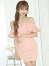 5. 袖付きワンカラータイトキャバドレス あいさ 着用 ミニドレス【RyuyuChick】(S/M/L)(ブラック/ピンク/ライトピンク/サーモンピンク)