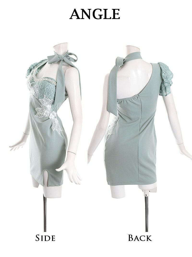 5. 立体刺繍ワンショルダーレースデザインタイトキャバドレス【Ryuyu】(S/M/L)(ピンク/ミント) ptpl