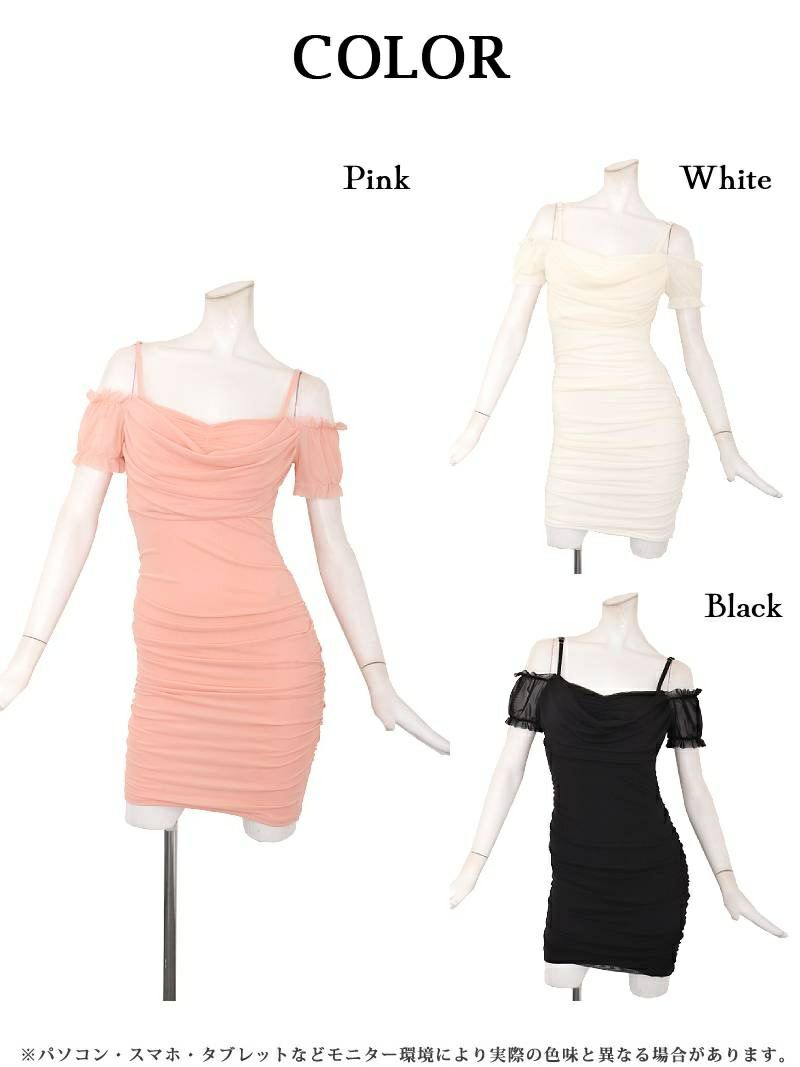 4. 透け感オフショルメッシュタイトミニドレス りせり 着用 キャバドレス【RyuyuChick】(M/L)(ブラック/ホワイト/ピンク)