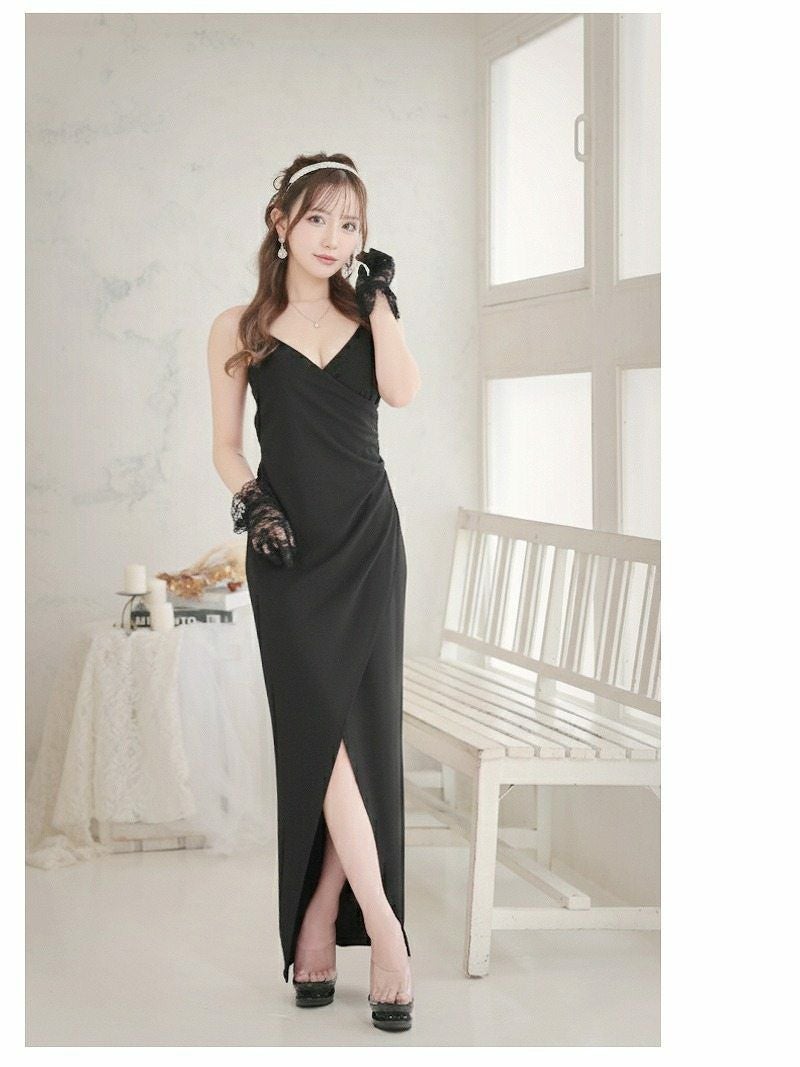 Vネックキャミソール スリット入りタイトロングドレス りせり 着用 キャバドレス【RyuyuChick】